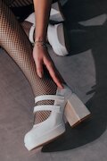 Beyaz Rugan Çift Cırtlı Kadın Platform Topuklu Ayakkabı Girona Siyah Rugan