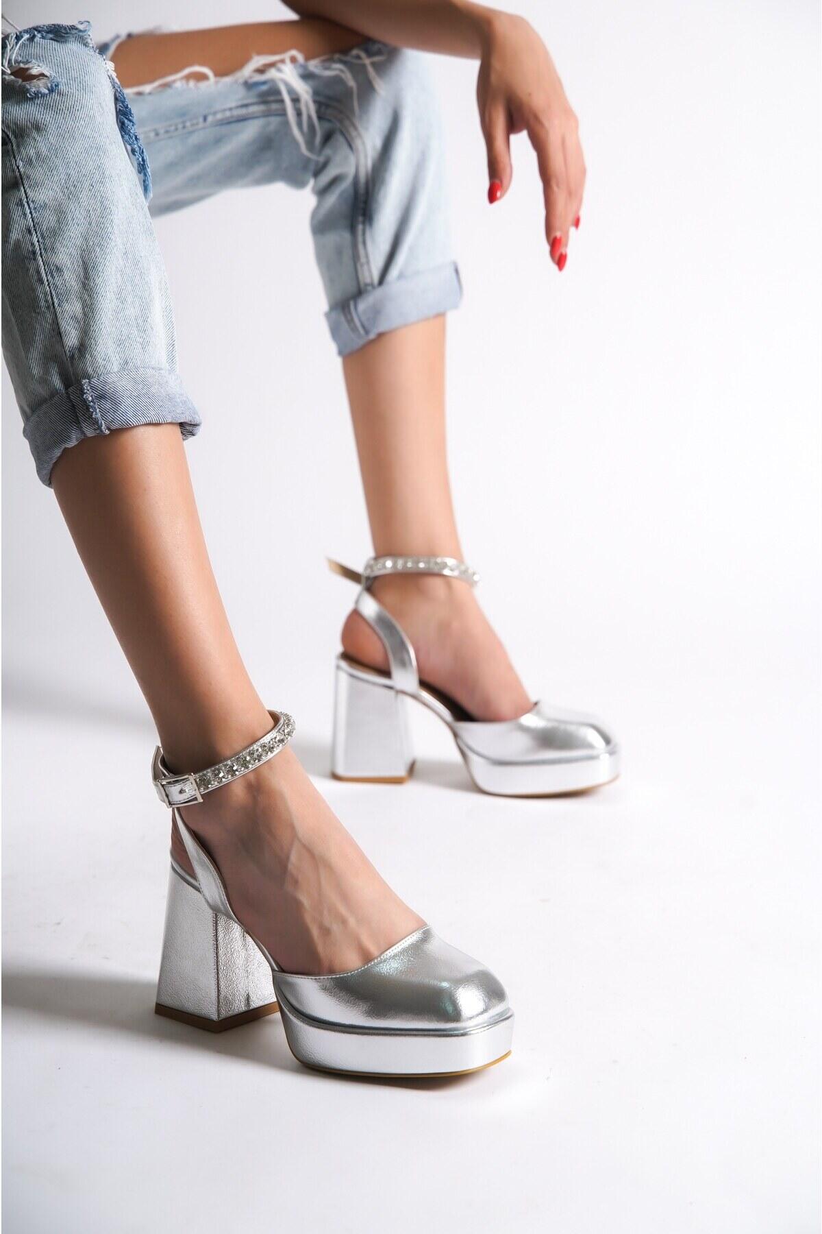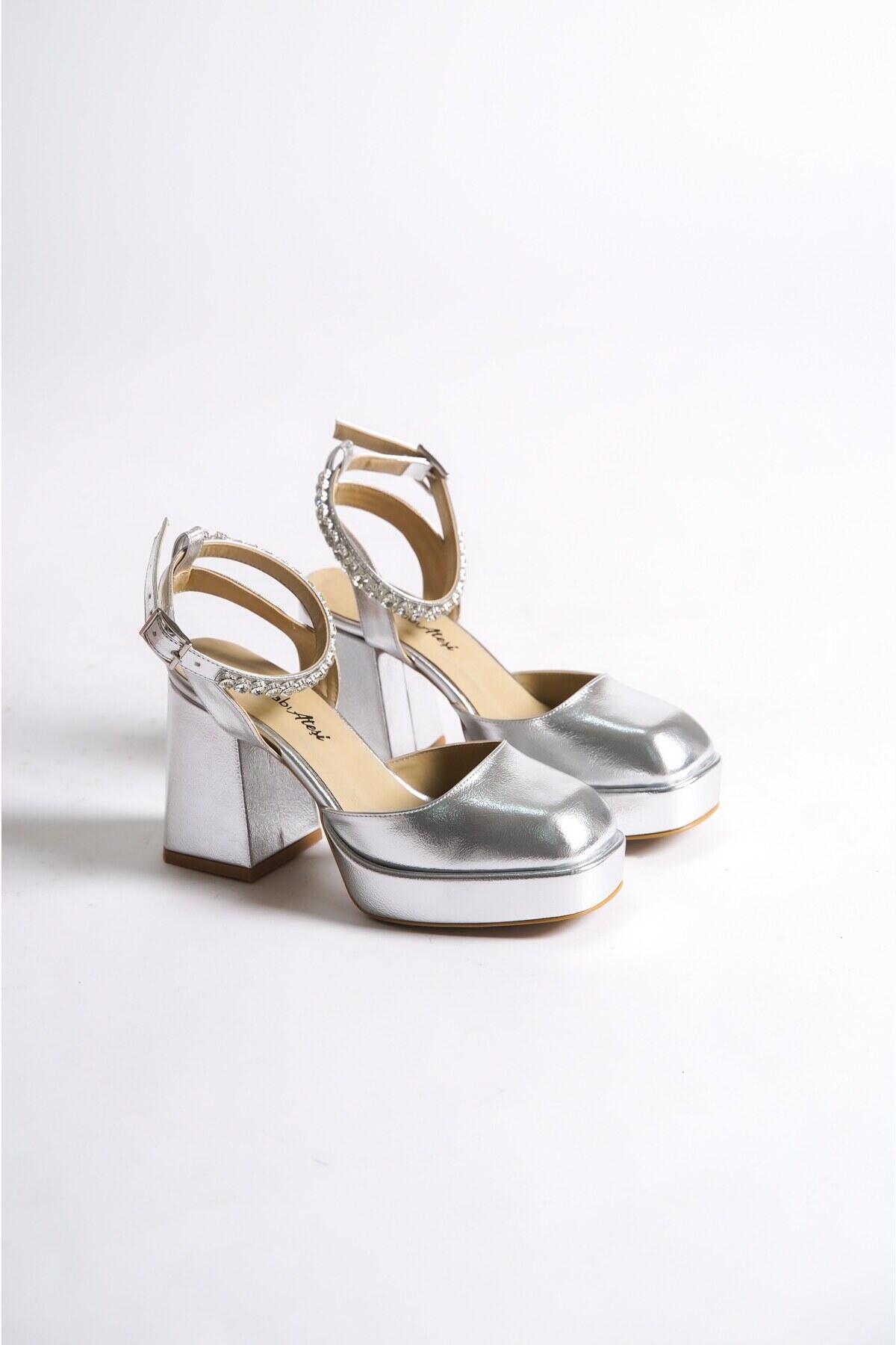 Kadın Alçak Platform Kalın Topuklu Ayakkabı Alice Gümüş