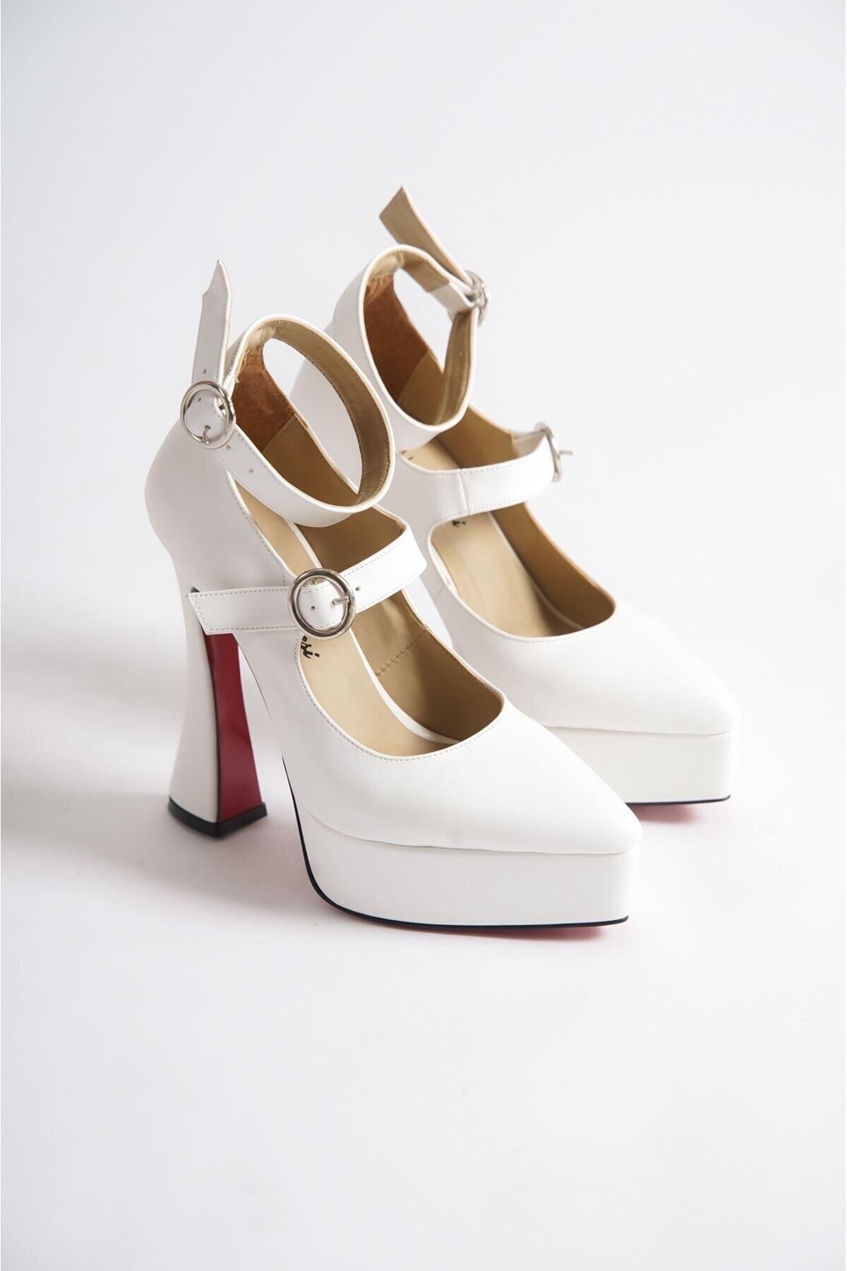 Kadın Baret Detaylı Özel Tasarım Platform Ayakkabı Akira Beyaz Cilt