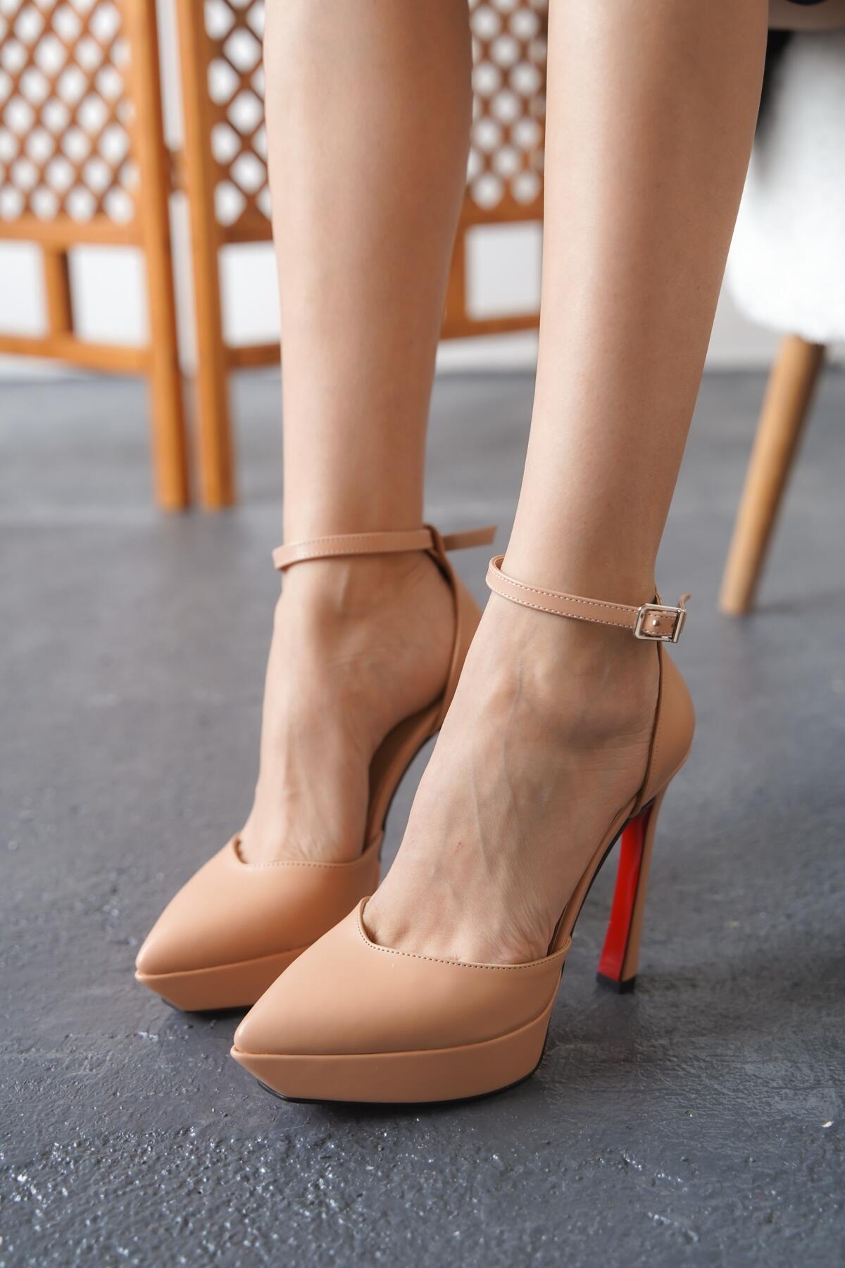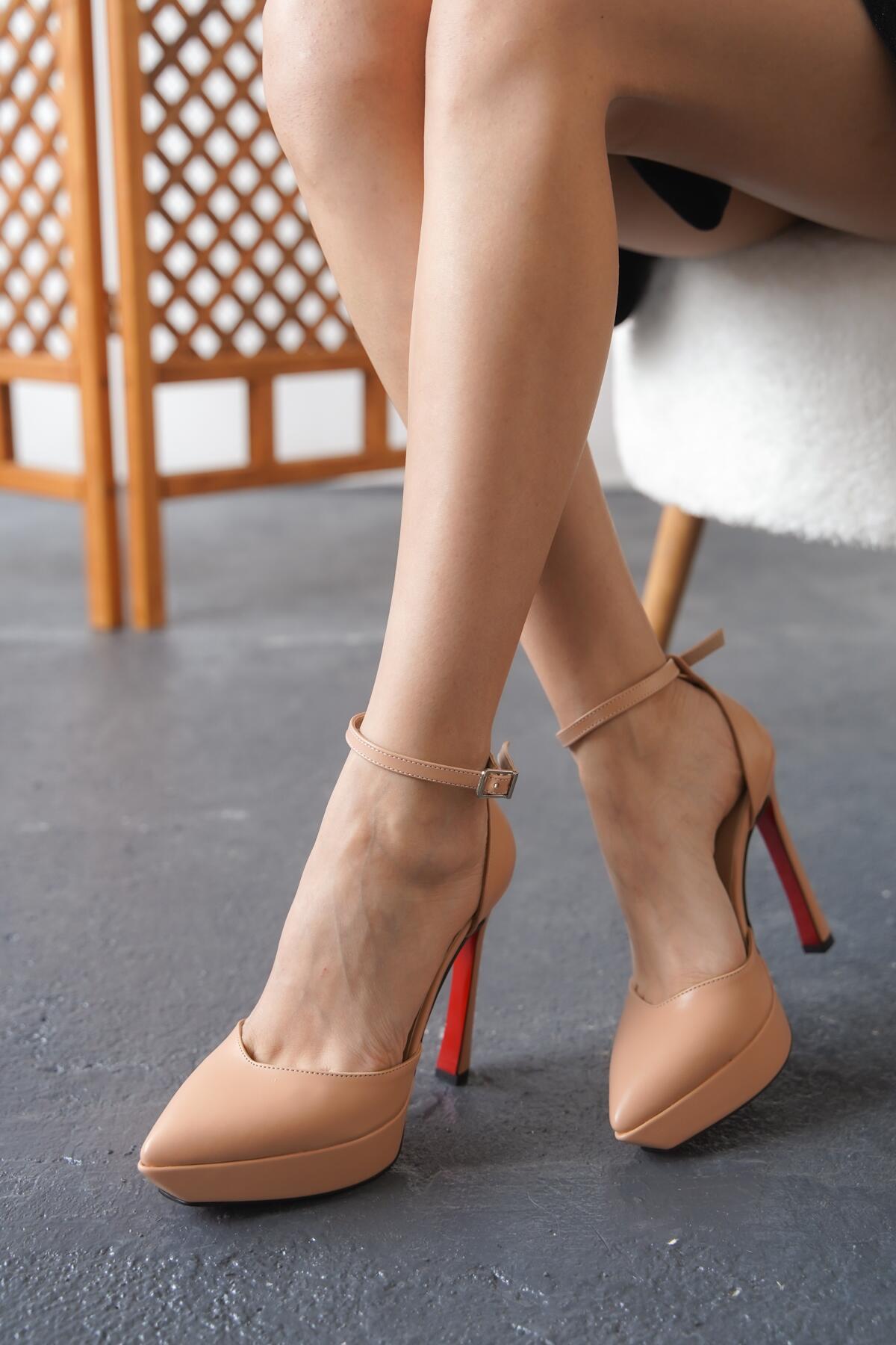 Kadın Baretli Platform Topuklu Ayakkabı Accies Nude Cilt