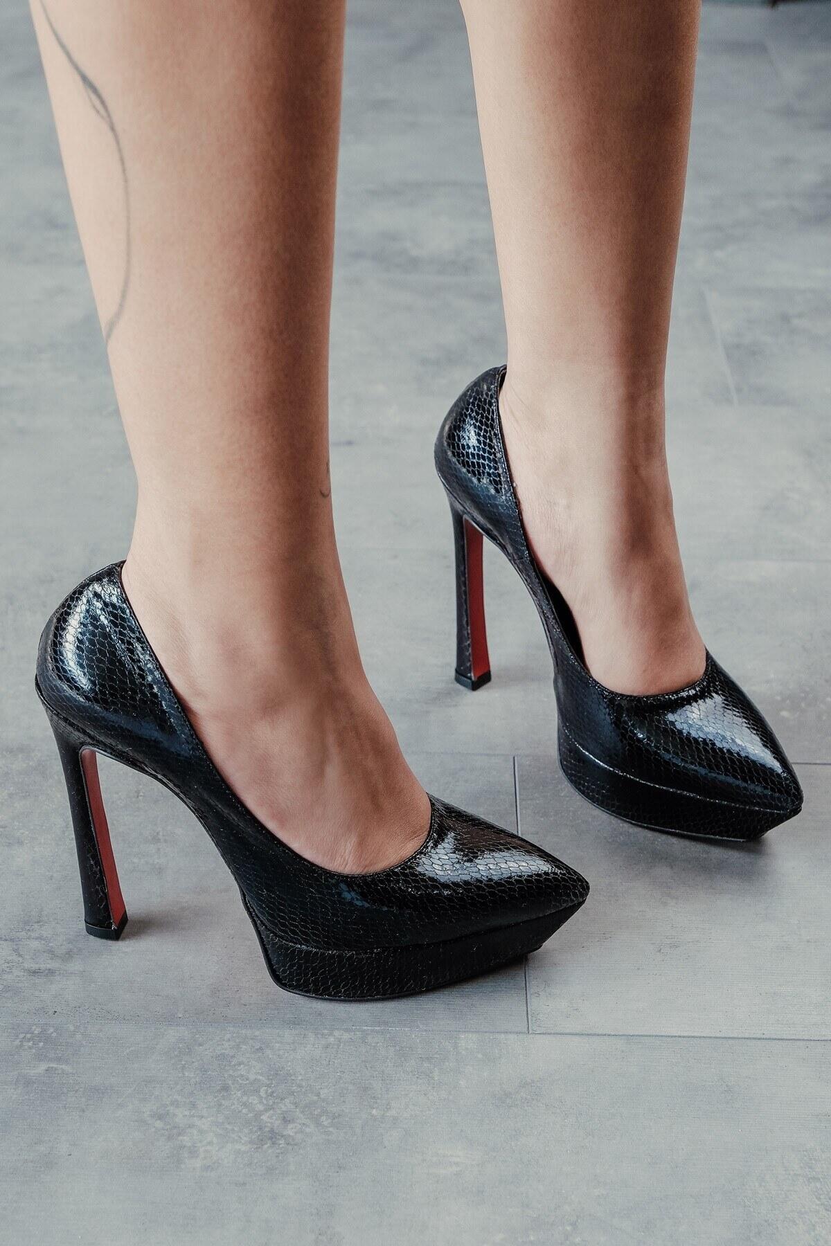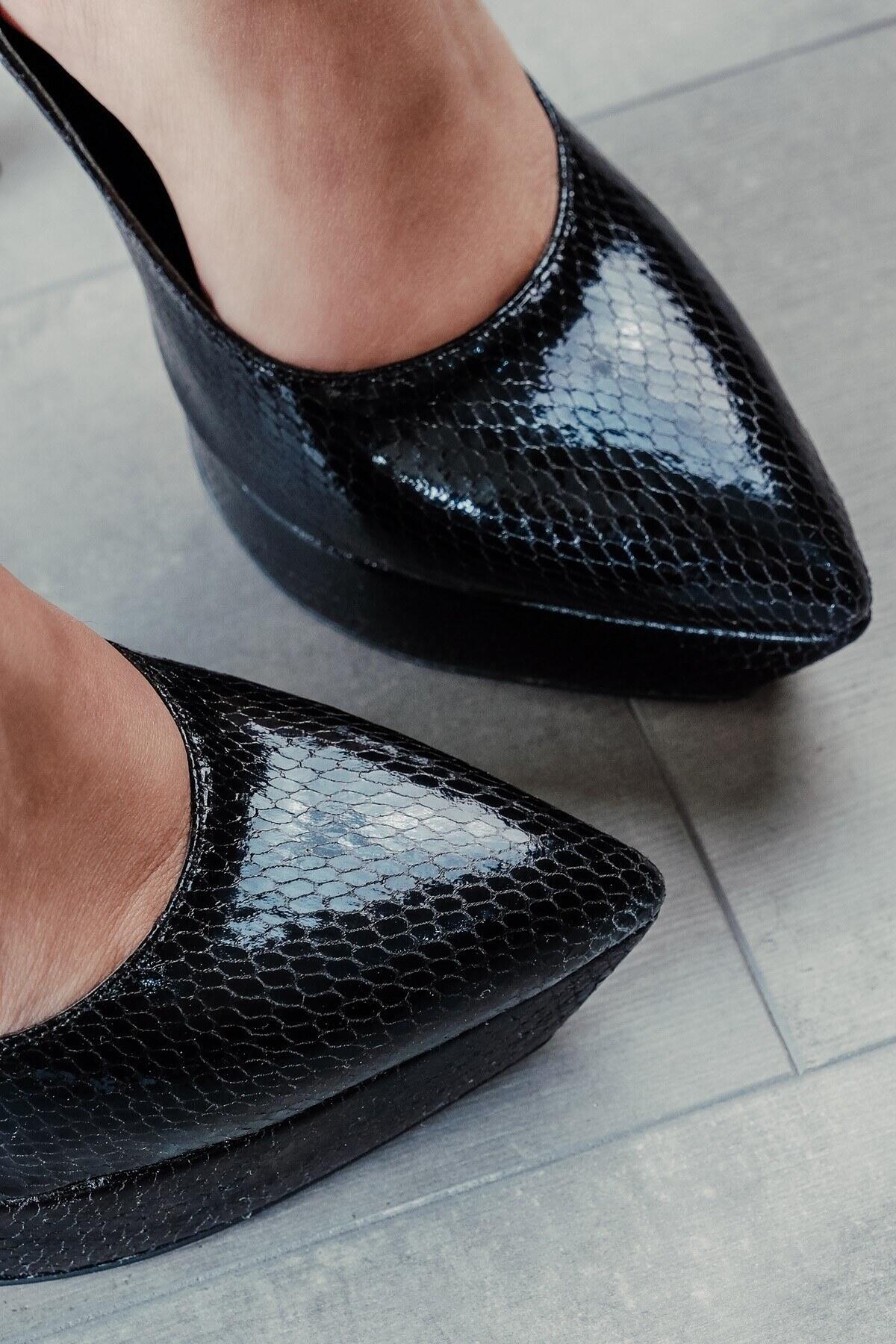 Kadın Baretli Platform Topuklu Ayakkabı Siena Siyah Yılan