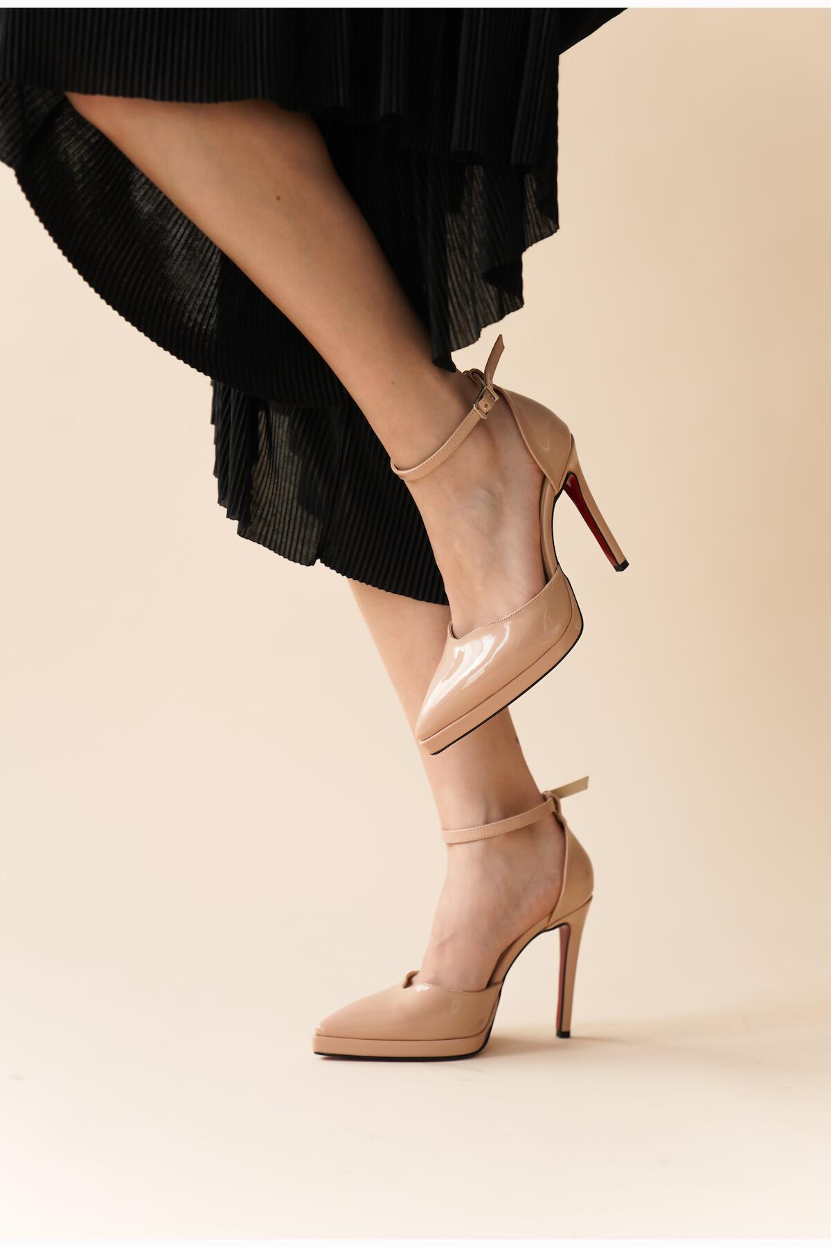Kadın Baretli Sivri Burun Topuklu Ayakkabı Minora Nude Rugan