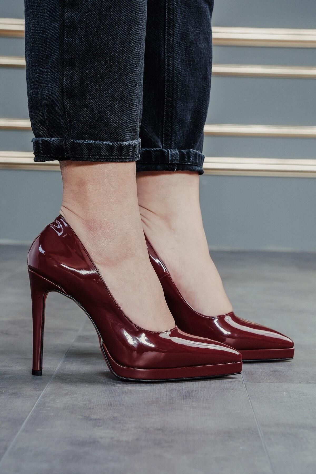 Kadın İnce Topuklu Platform Terlik Nicola Bordo
