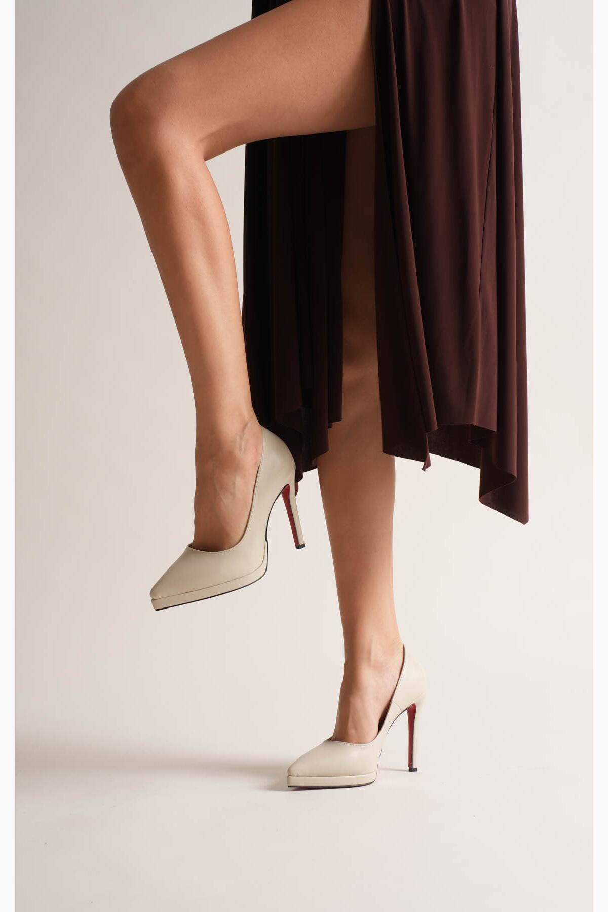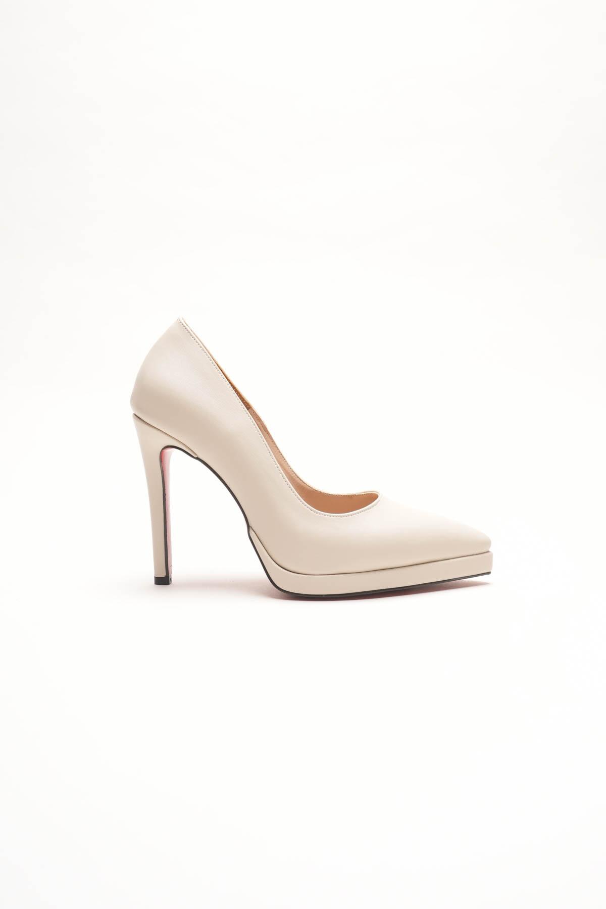 Kadın İnce Topuklu Platform Terlik Sisie Bej