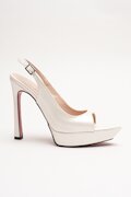 Kadın İnce Topuklu Platform Terlik Sisie Beyaz Rugan