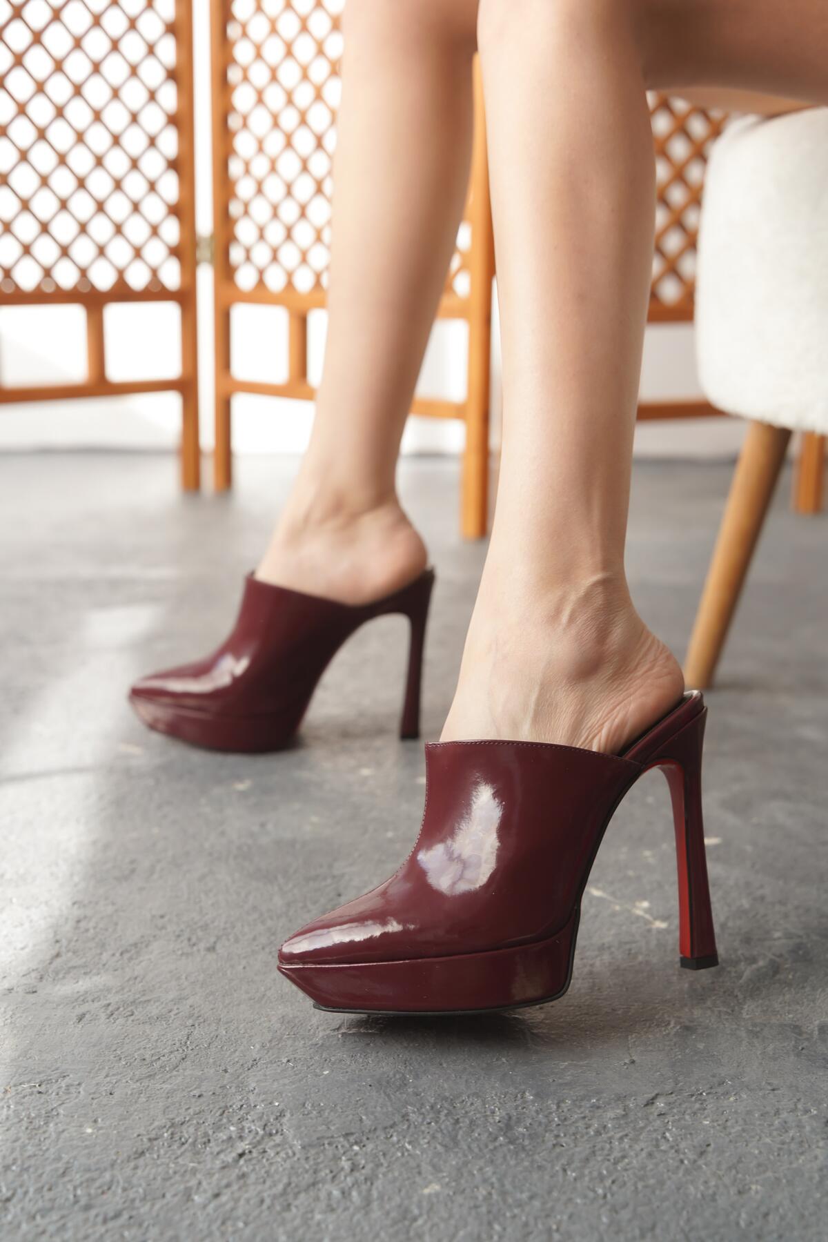 Kadın İnce Topuklu Platform Terlik Sisie Bordo