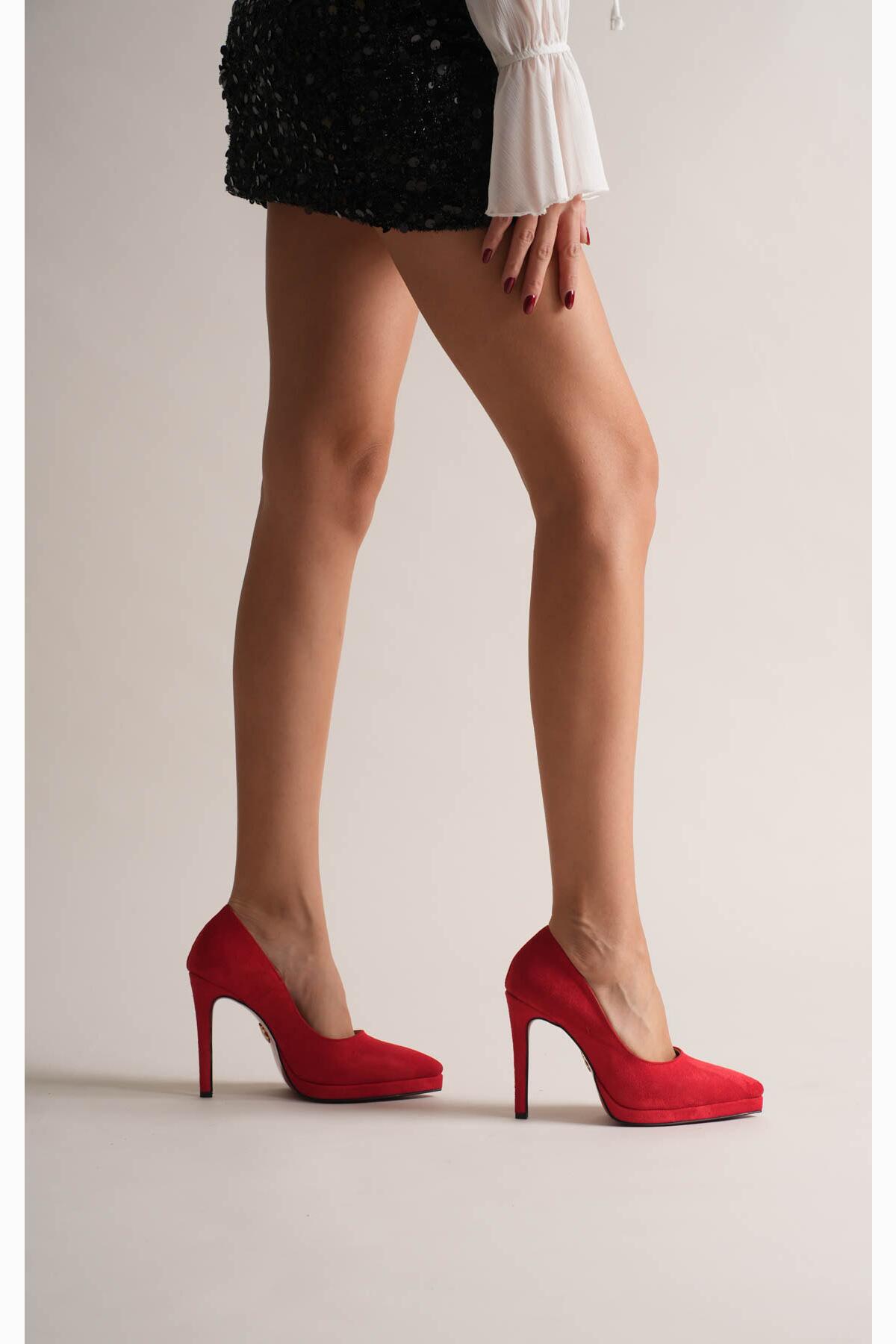 Kadın İnce Topuklu Platform Terlik Sisie Kırmızı Süet