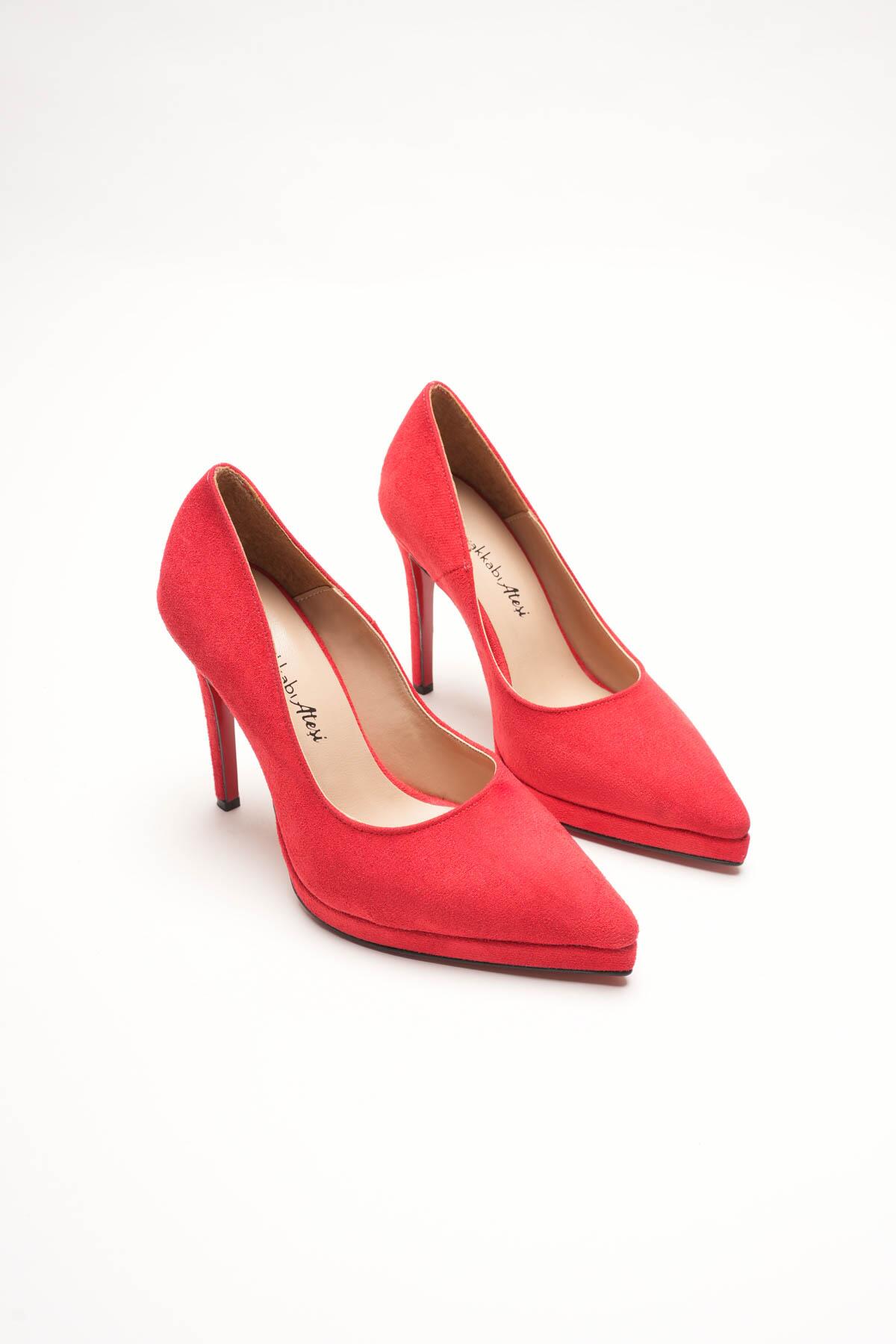 Kadın İnce Topuklu Platform Terlik Sisie Kırmızı Süet