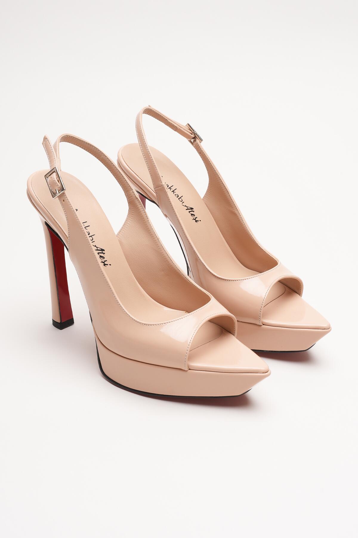 Kadın İnce Topuklu Platform Terlik Sisie Nude Rugan