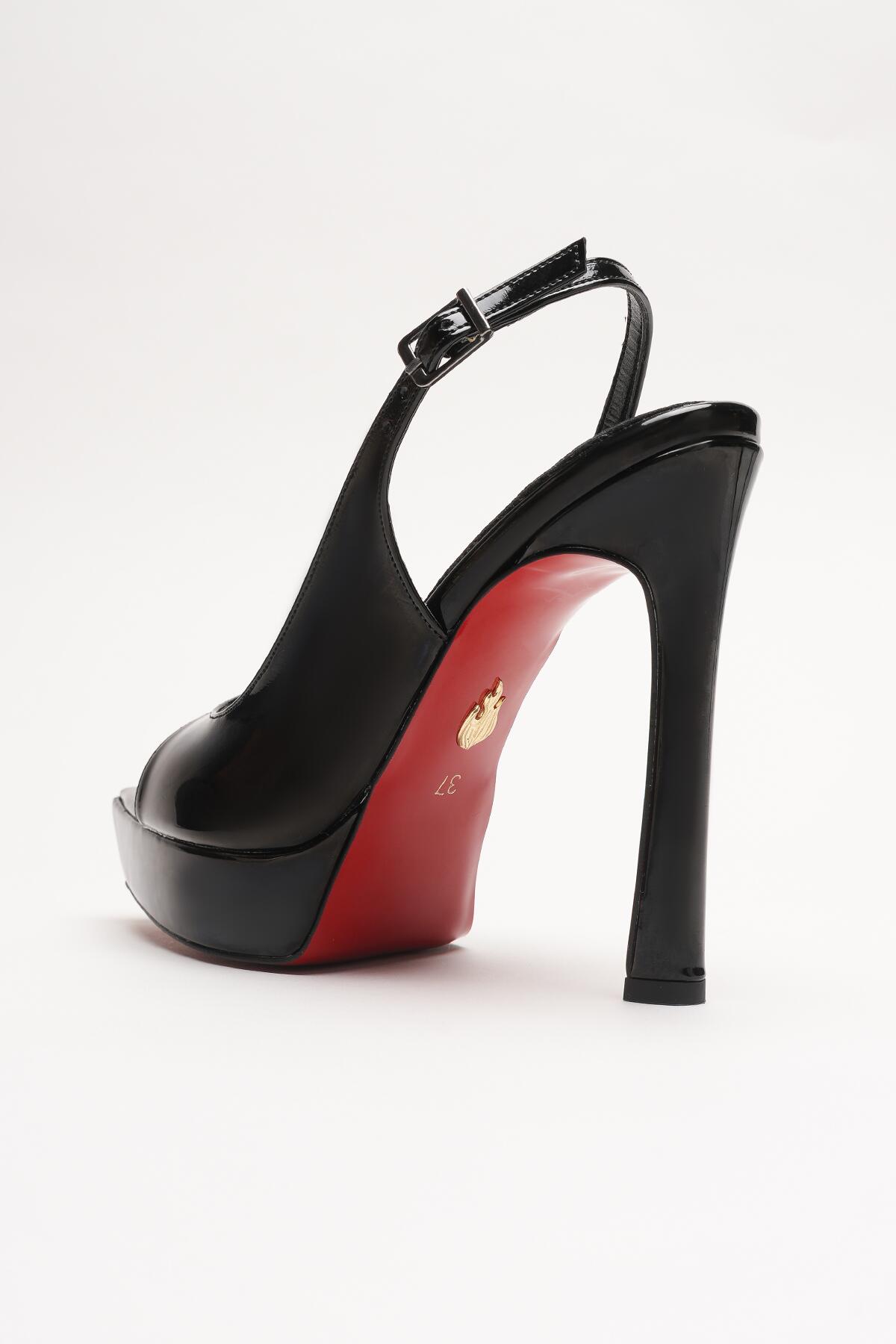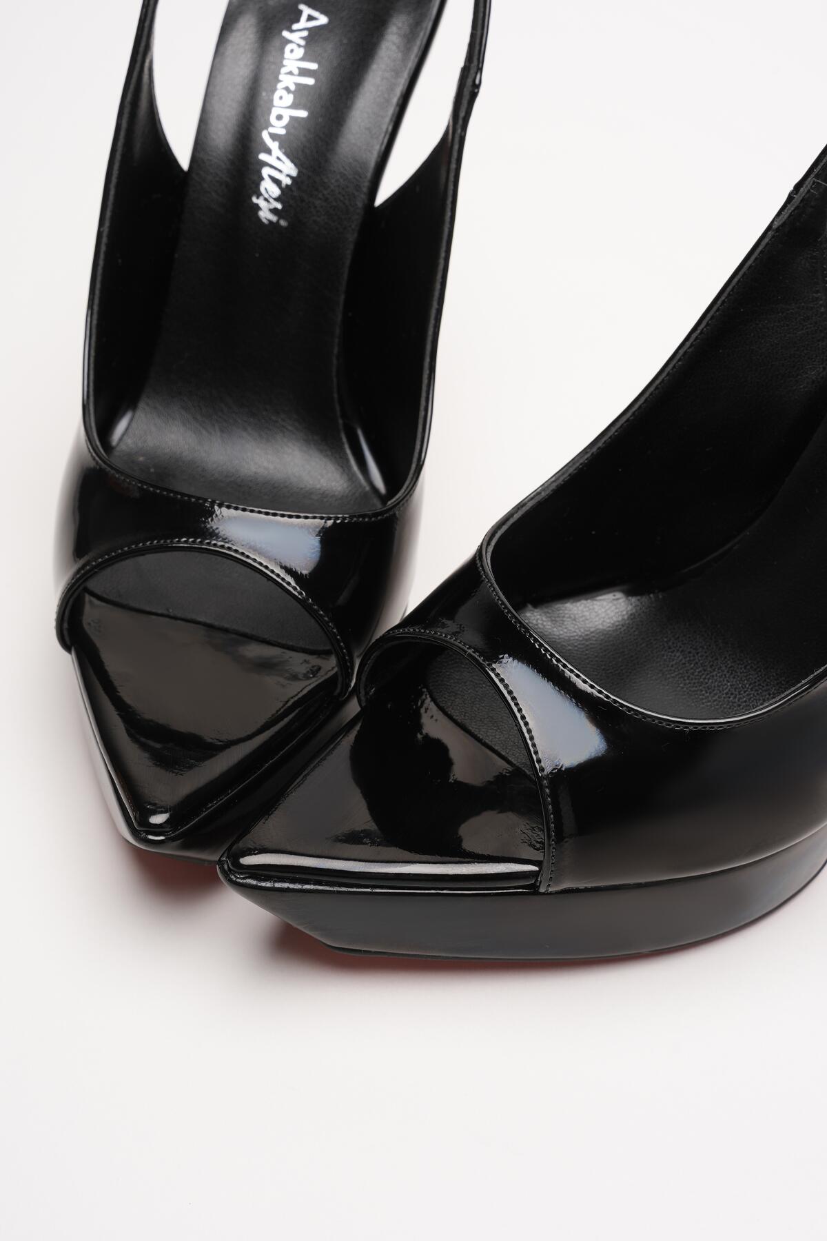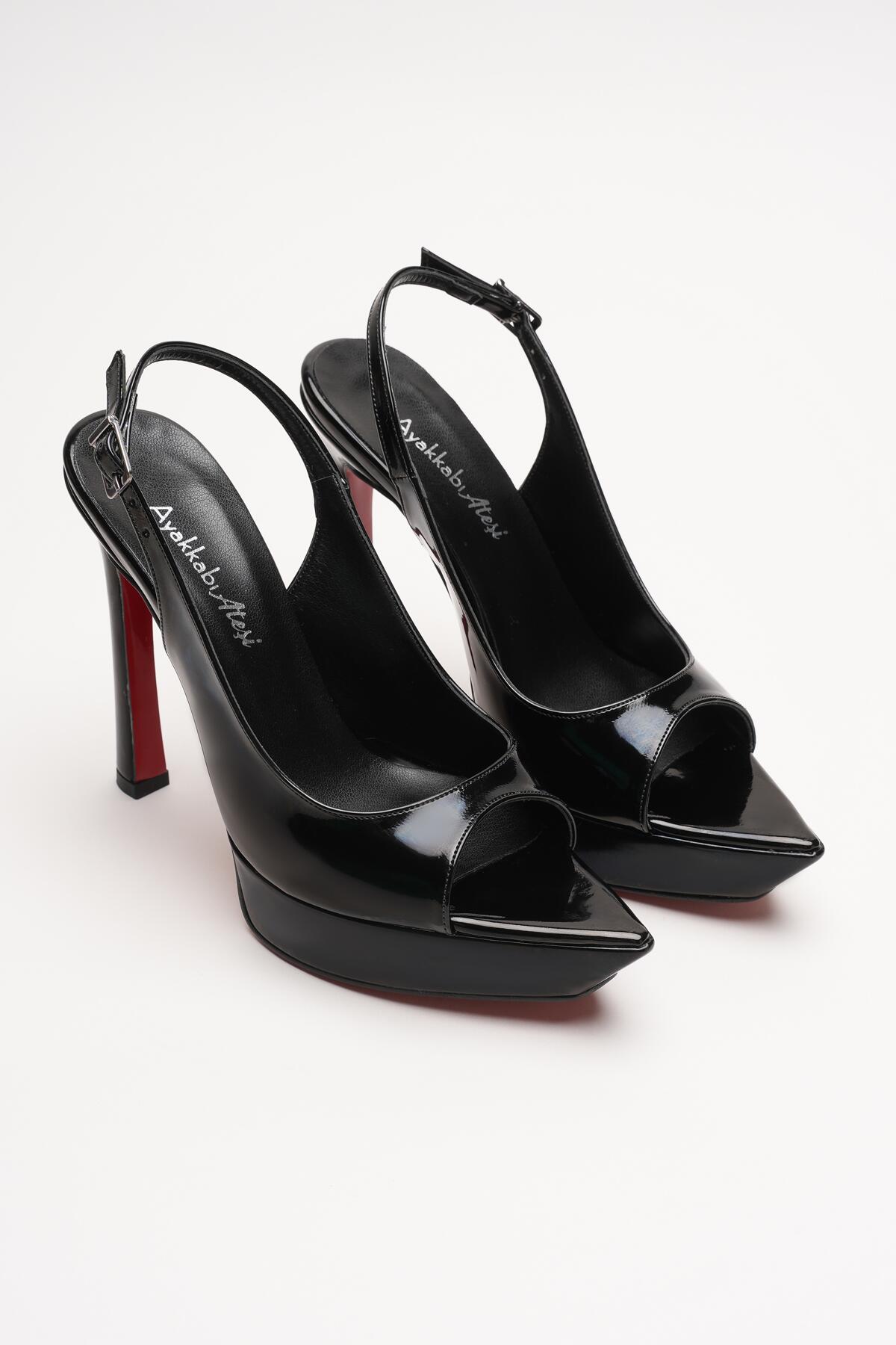 Kadın İnce Topuklu Platform Terlik Sisie Siyah Rugan