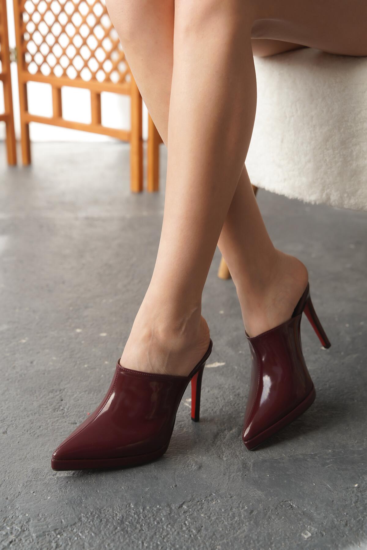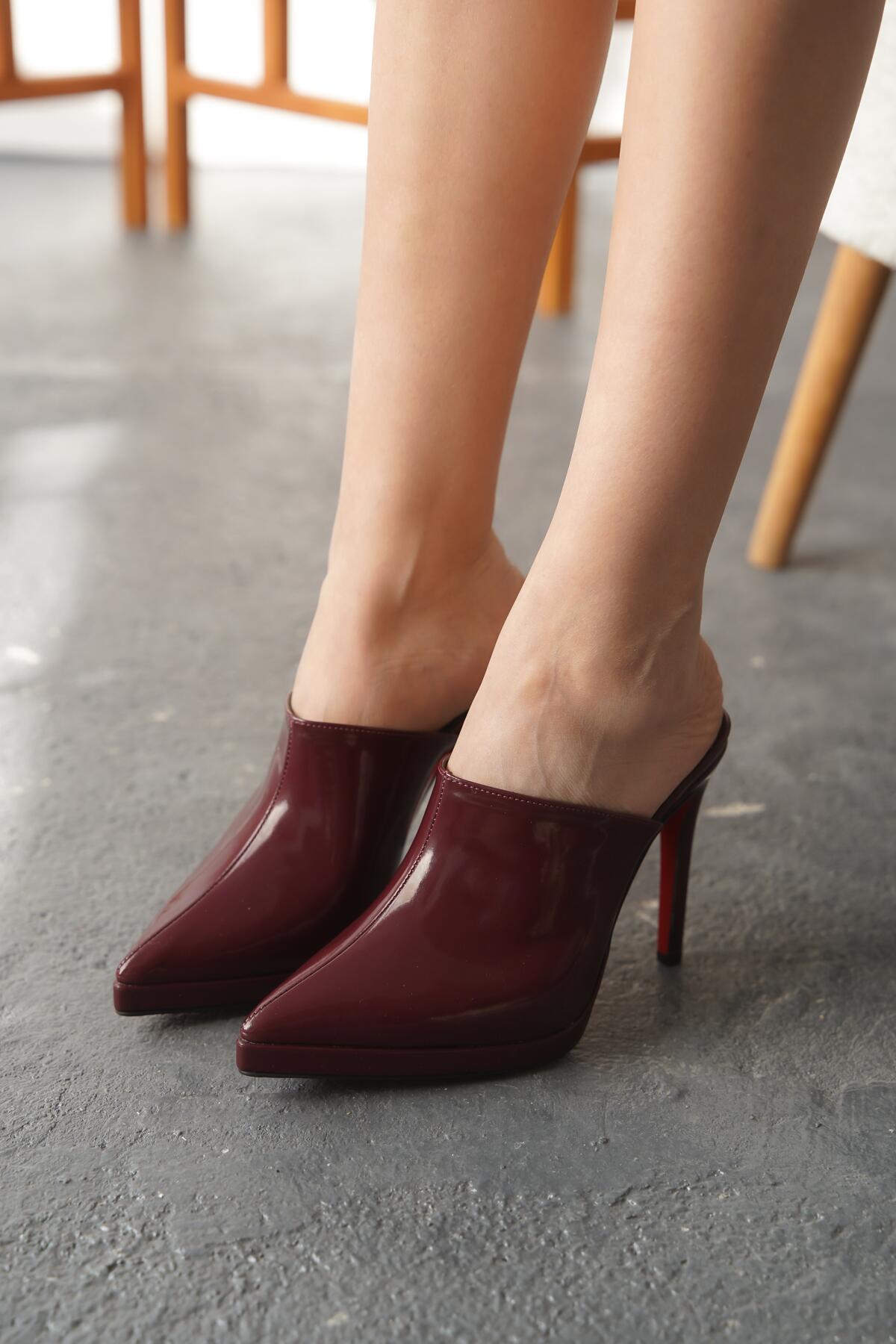 Kadın Kısa Platform İnce Topuklu Terlik Miole Bordo