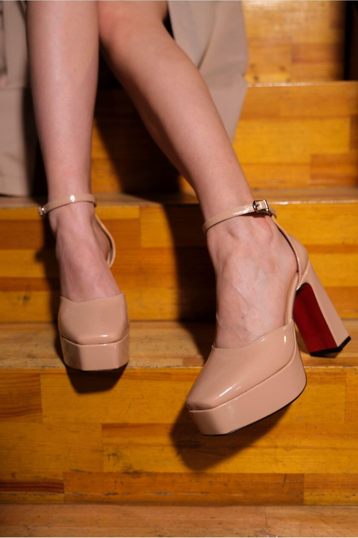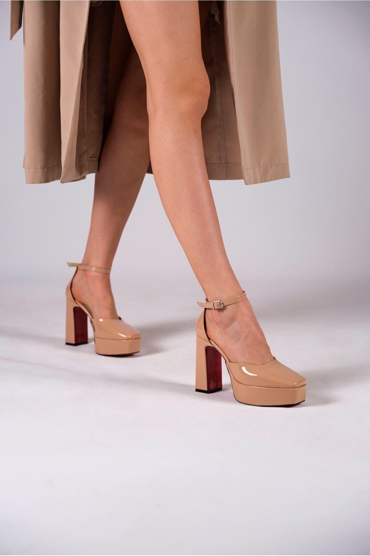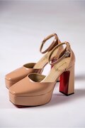 Kadın Özel Tasarım Orta Topuklu Topuklu Ayakkabı Albina Nude Rugan