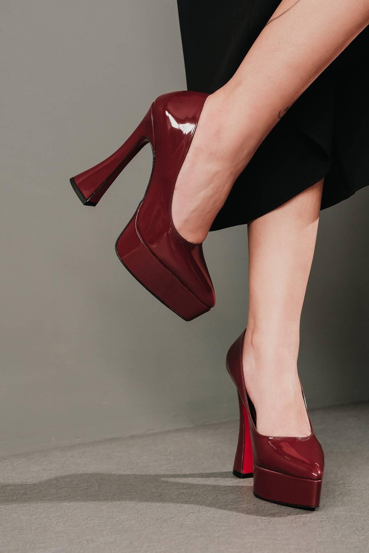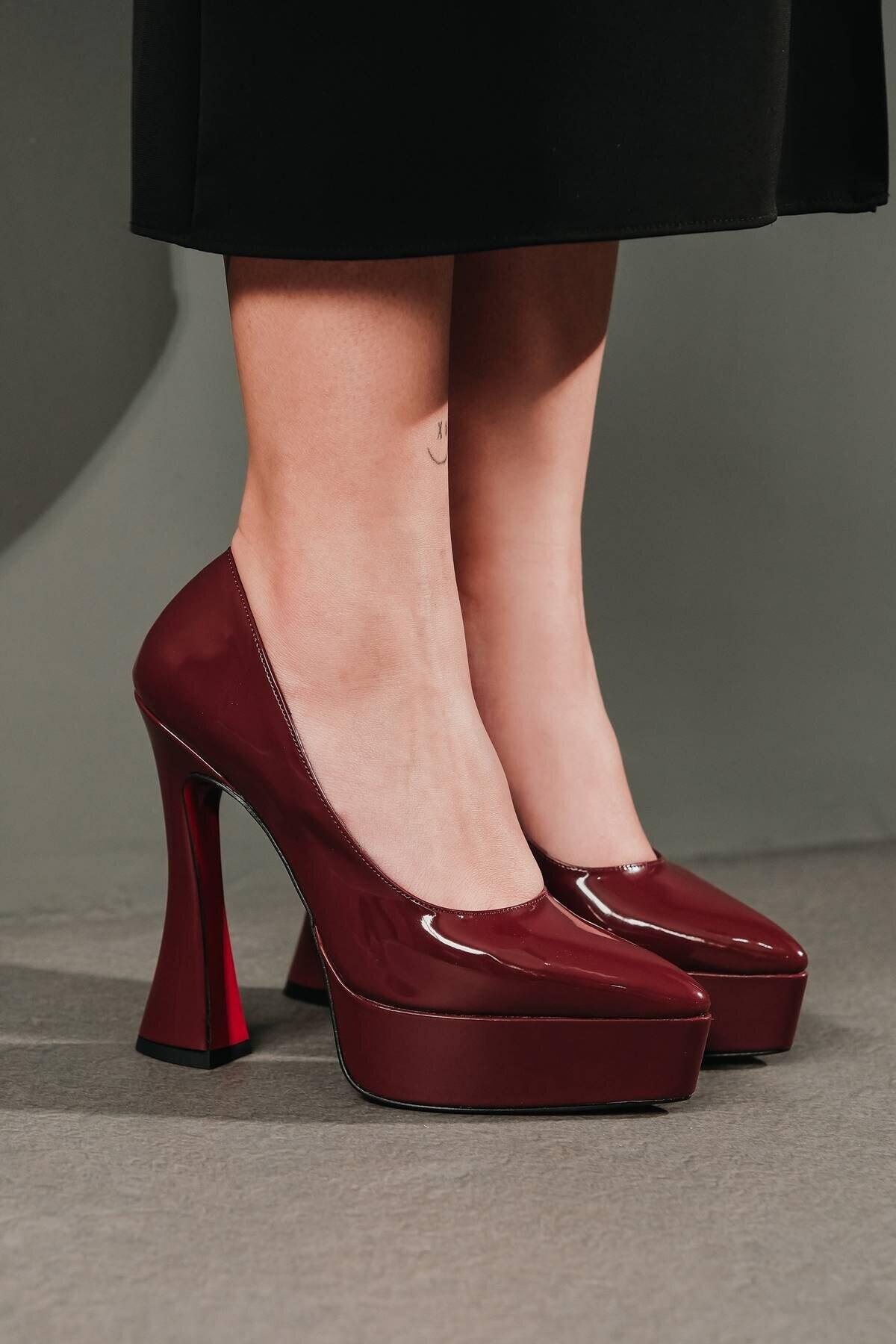 Kadın Özel Tasarım Orta Topuklu Topuklu Ayakkabı Mila Bordo