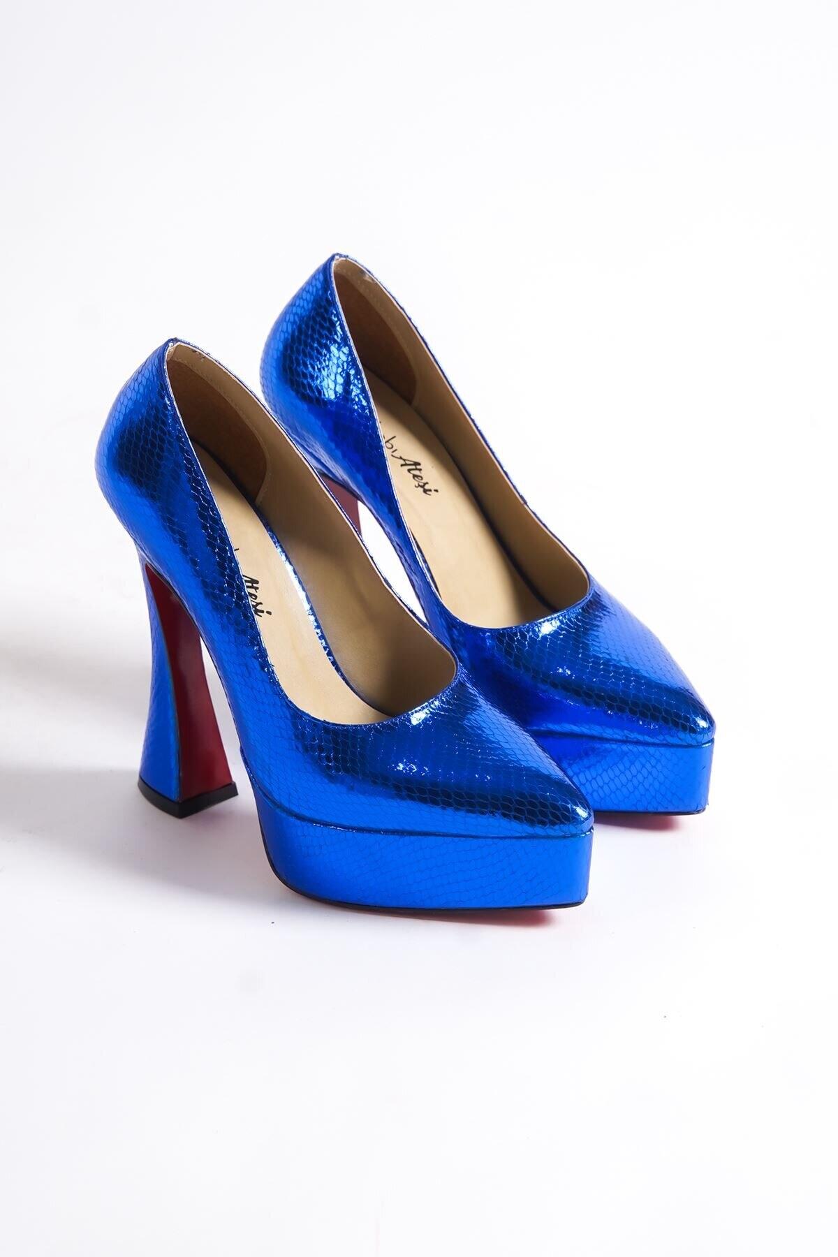 Kadın Özel Tasarım Orta Topuklu Topuklu Ayakkabı Mila Mavi
