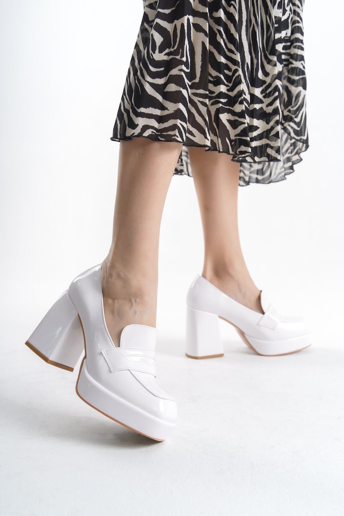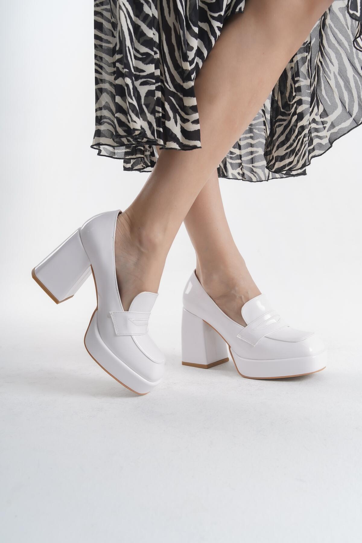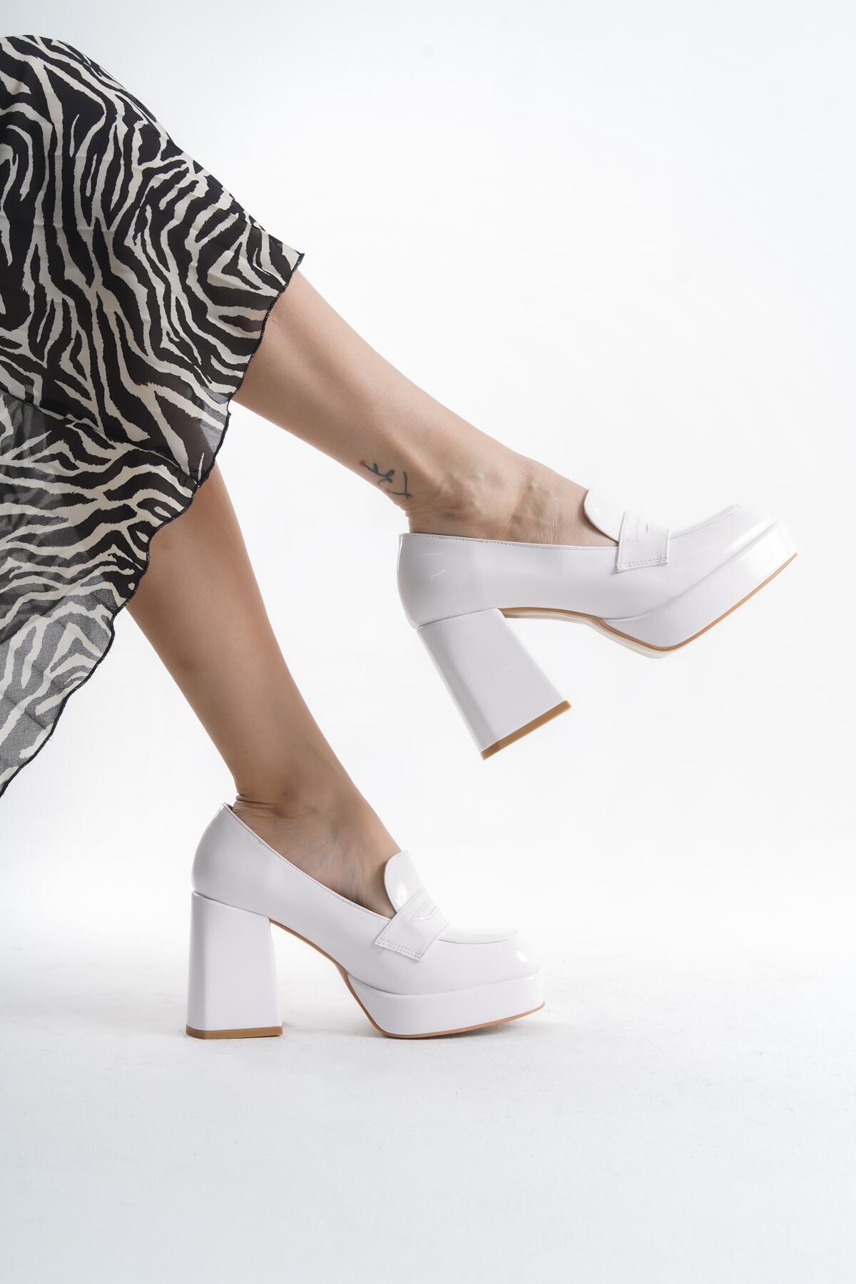 Kadın Platform Kalın Topuklu Loafer Harrie Beyaz Rugan