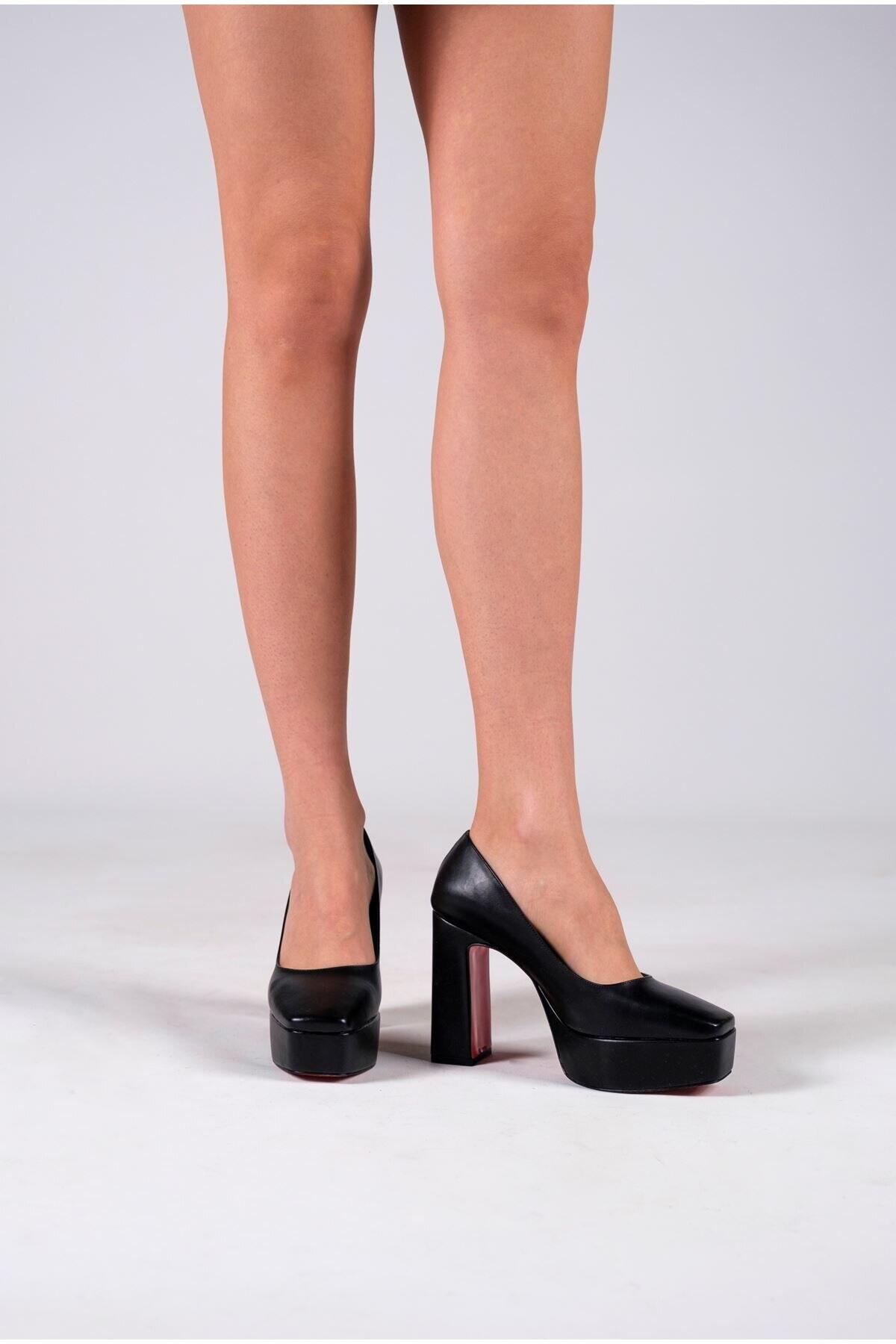 Kadın Platform Tasarım Toka Detaylı Orta Topuklu Ayakkabı Chelsea Siyah Cilt