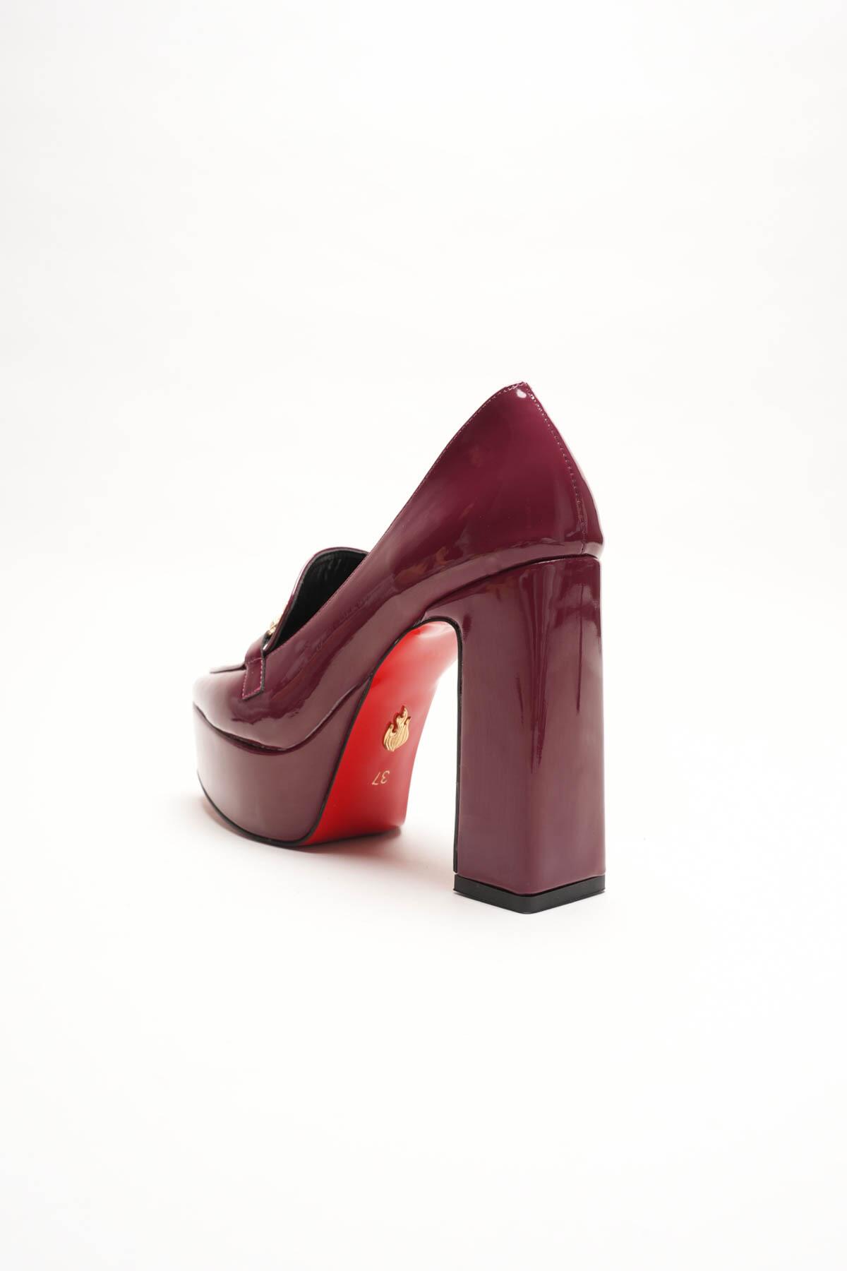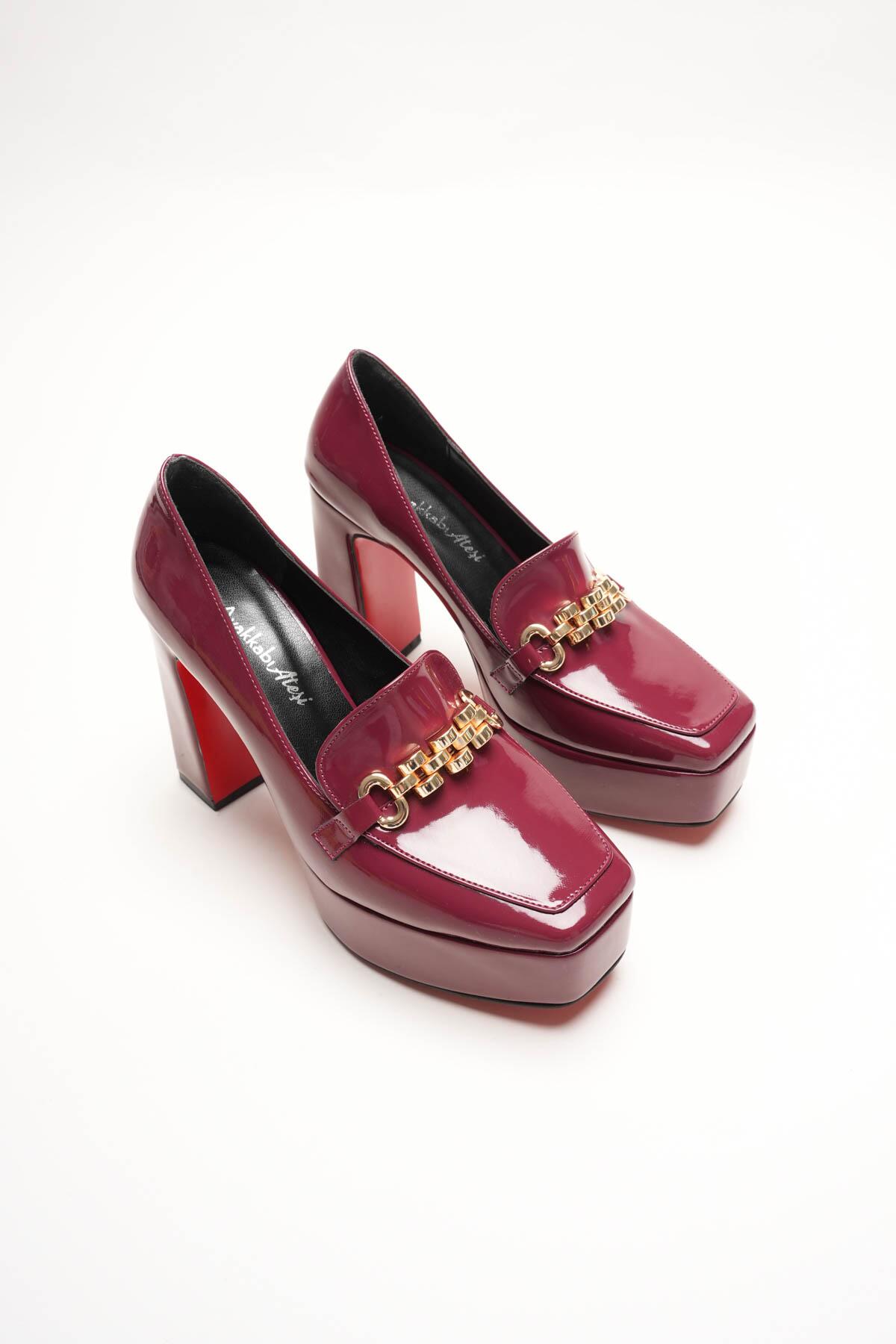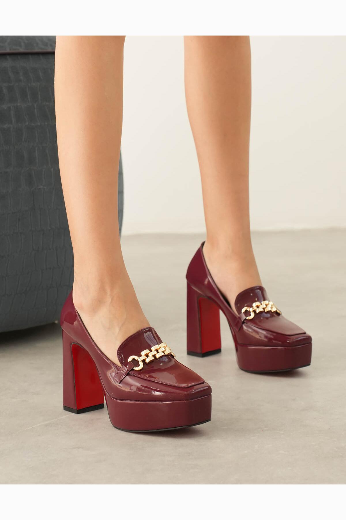 Kadın Platform Tasarım Toka Detaylı Orta Topuklu Ayakkabı Vanera Bordo