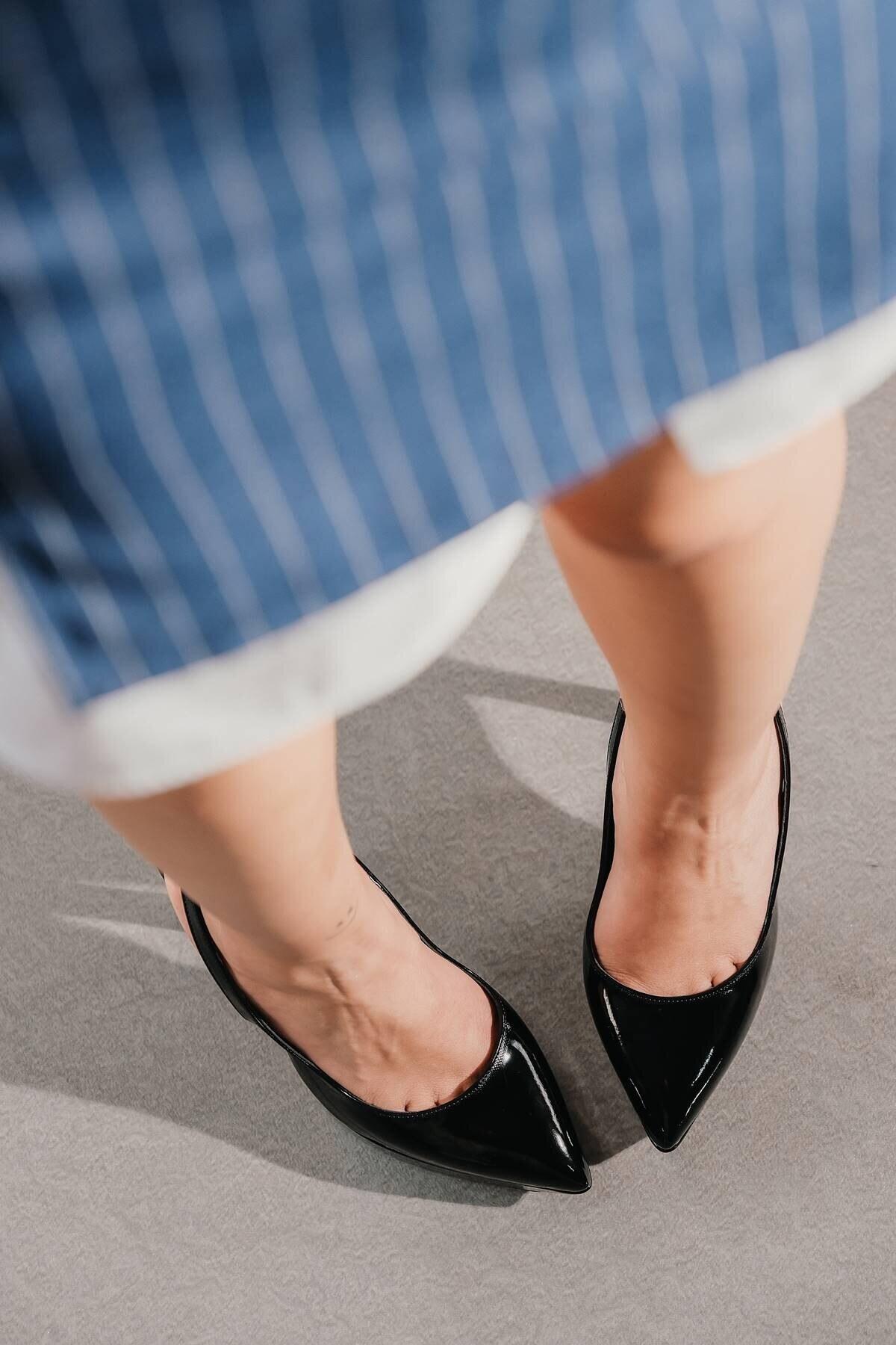 Kadın Platform Topuklu Ayakkabı Tinevi Siyah Rugan