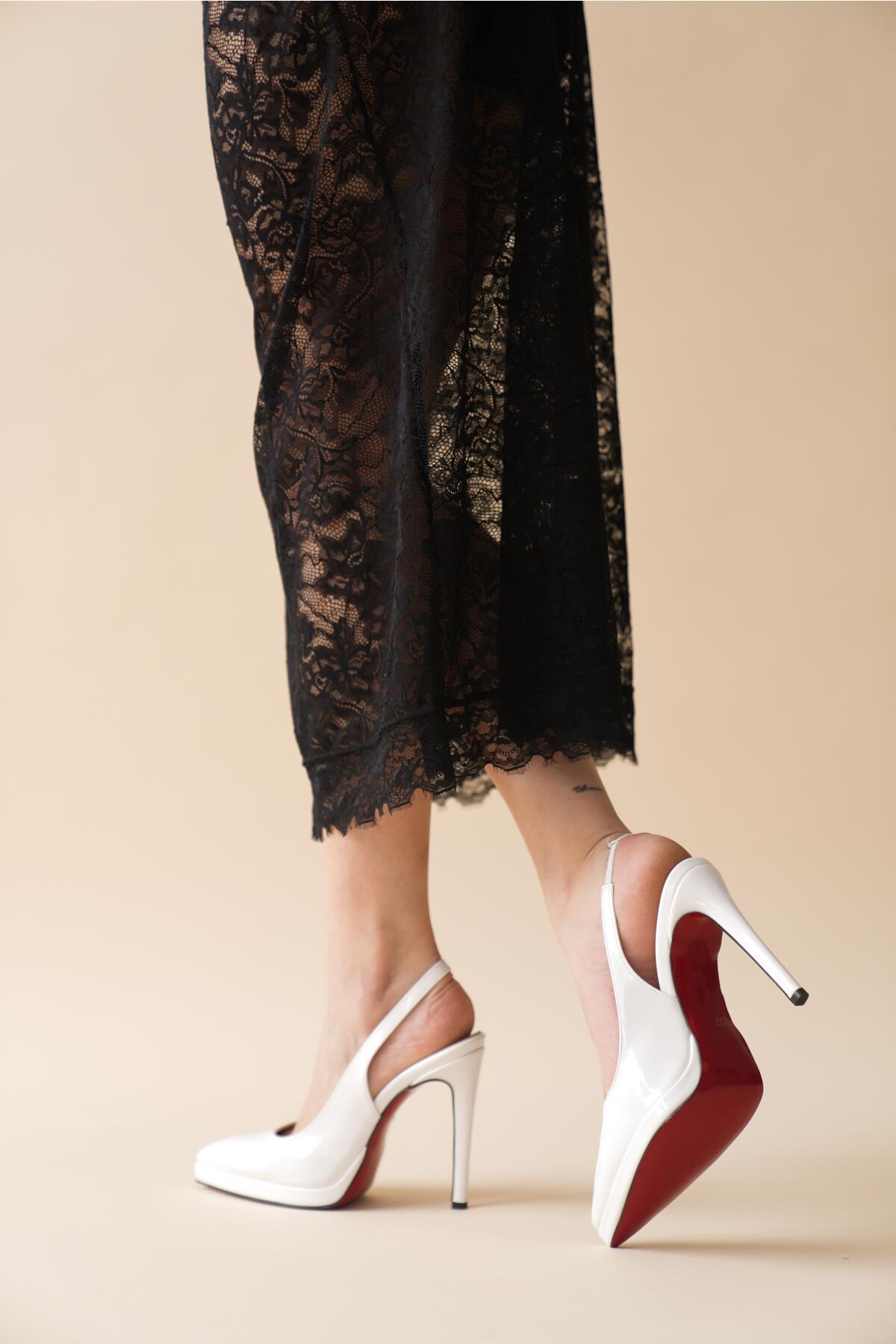 Kadın Sivri Burun Topuklu Ayakkabı Chicora Beyaz Rugan