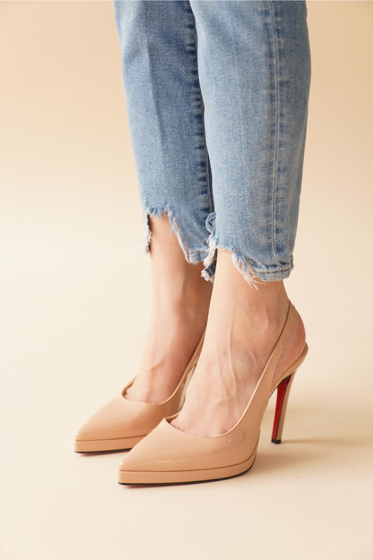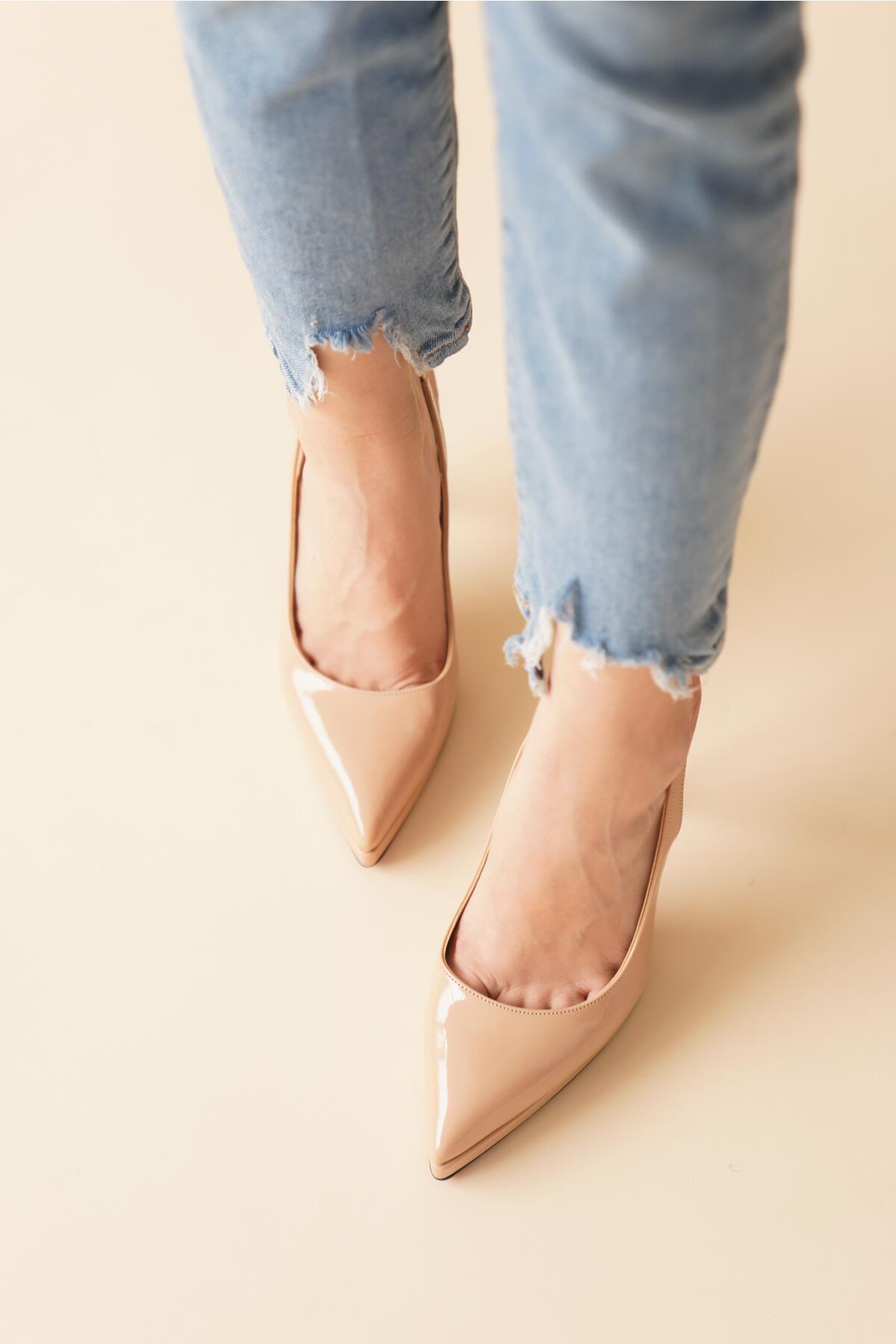 Kadın Sivri Burun Topuklu Ayakkabı Chicora Nude Rugan