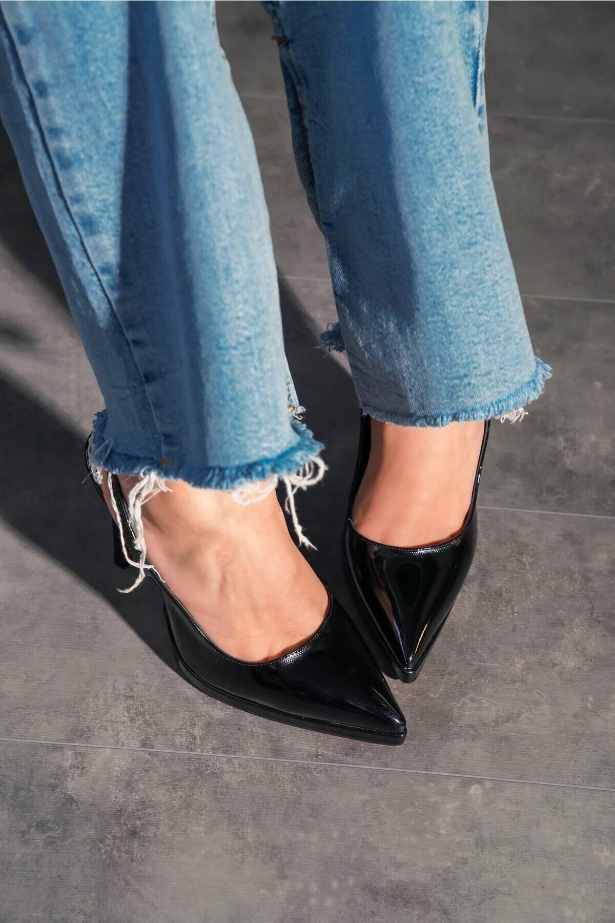 Kadın Sivri Burun Topuklu Ayakkabı Chicora Siyah Rugan
