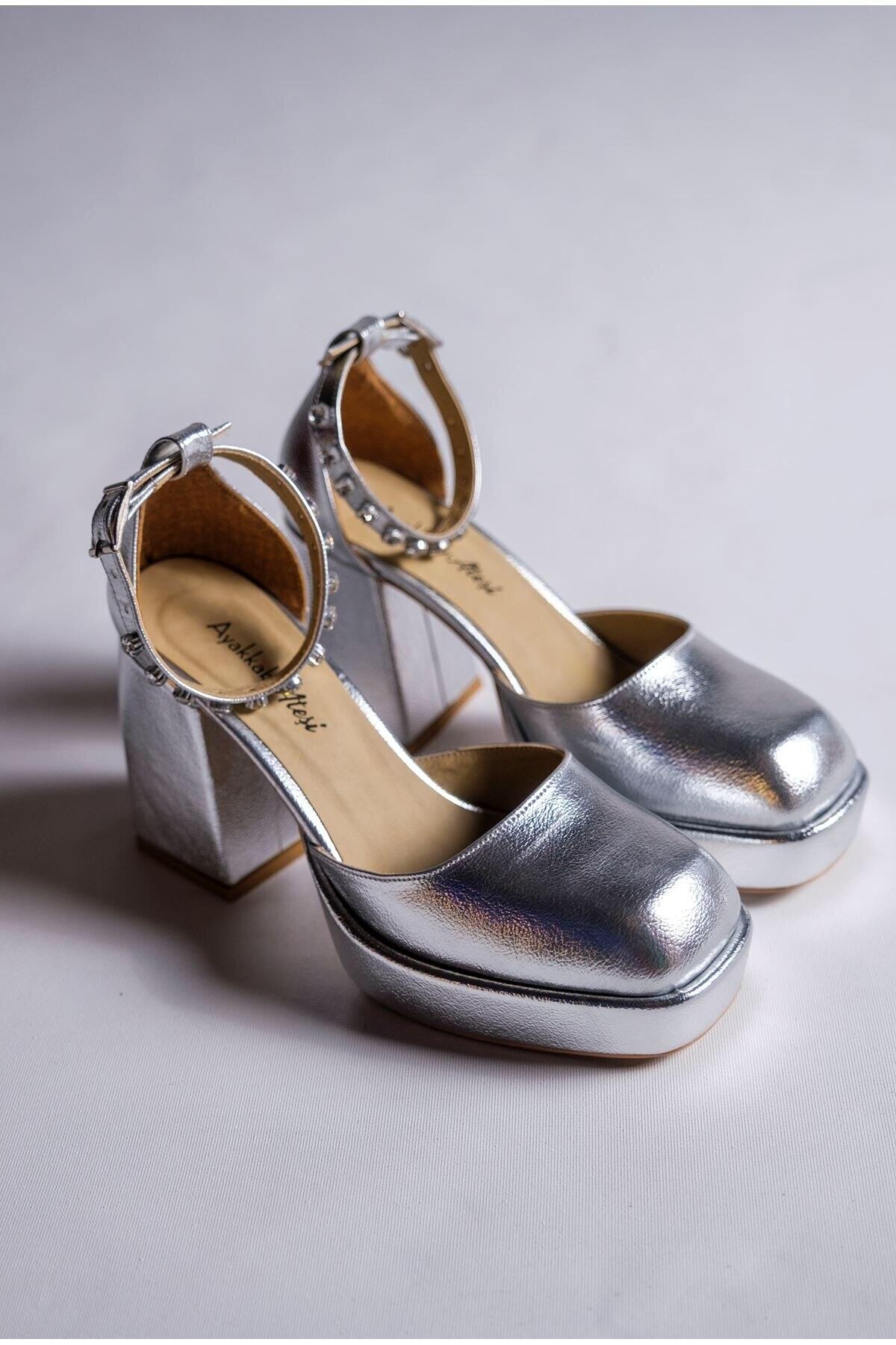 Kadın Taş Detaylı Özel Tasarım Alçak Topuklu Ayakkabısı Sandy Gümüş