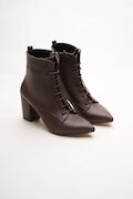 Kadın Bağcıklı Fermuarlı Sivri Burun Kalın Topuklu Bot Vorena Kahverengi