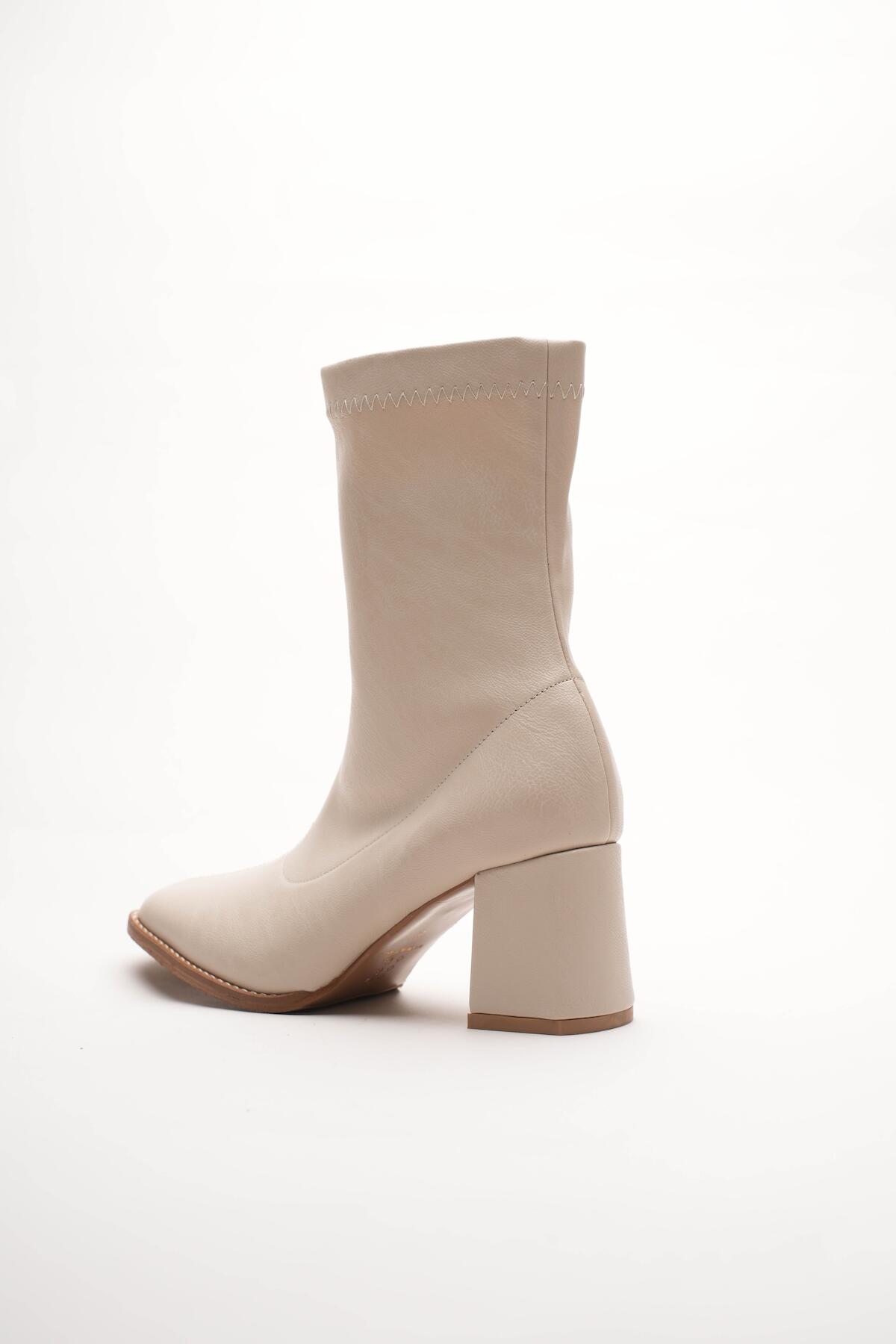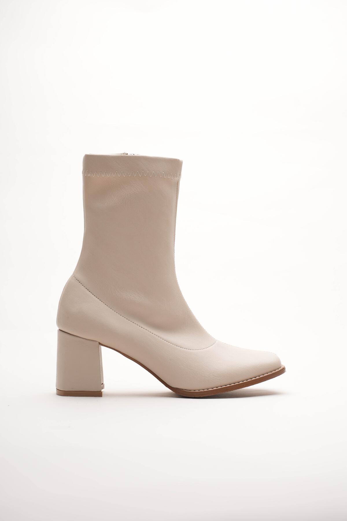 Kadın Fermuarlı Streç Topuklu Bot Cosele Bej
