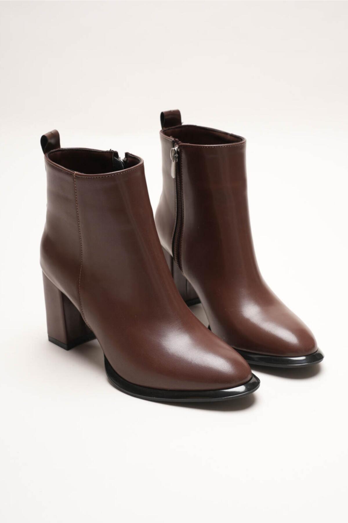 Kadın Kahverengi Kalın Topuklu Fermuarlı Kışlık Bot & Suni Deri Bilek Boy Bootie Julian Kahverengi