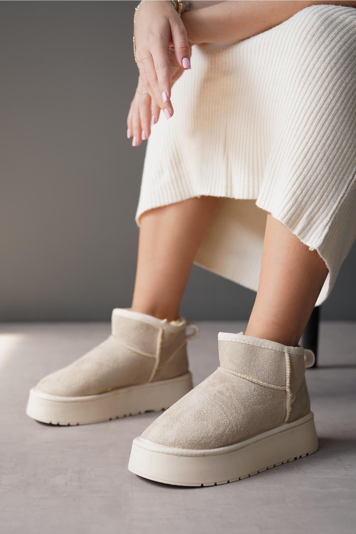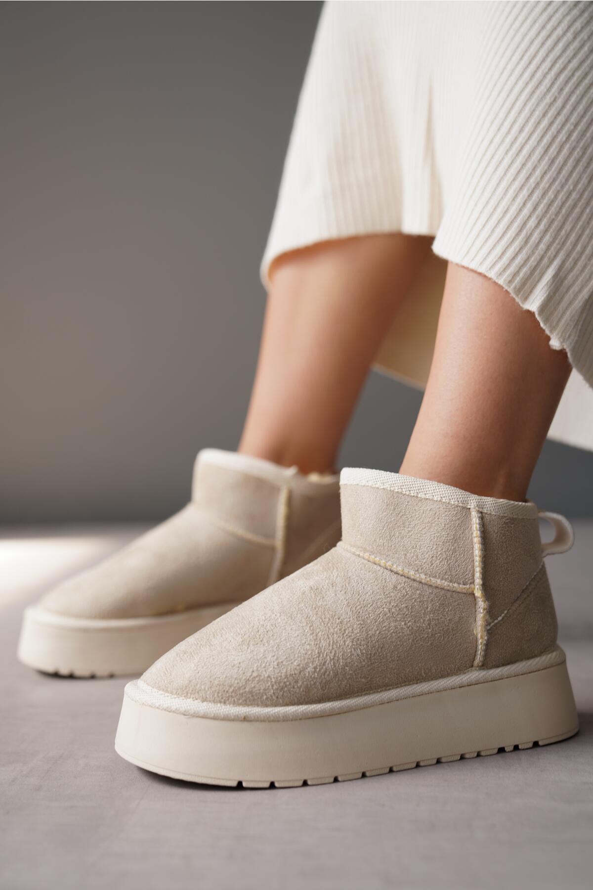 Kadın İçi Kürklü Kalın Taban Mini Bot Ziac Bej