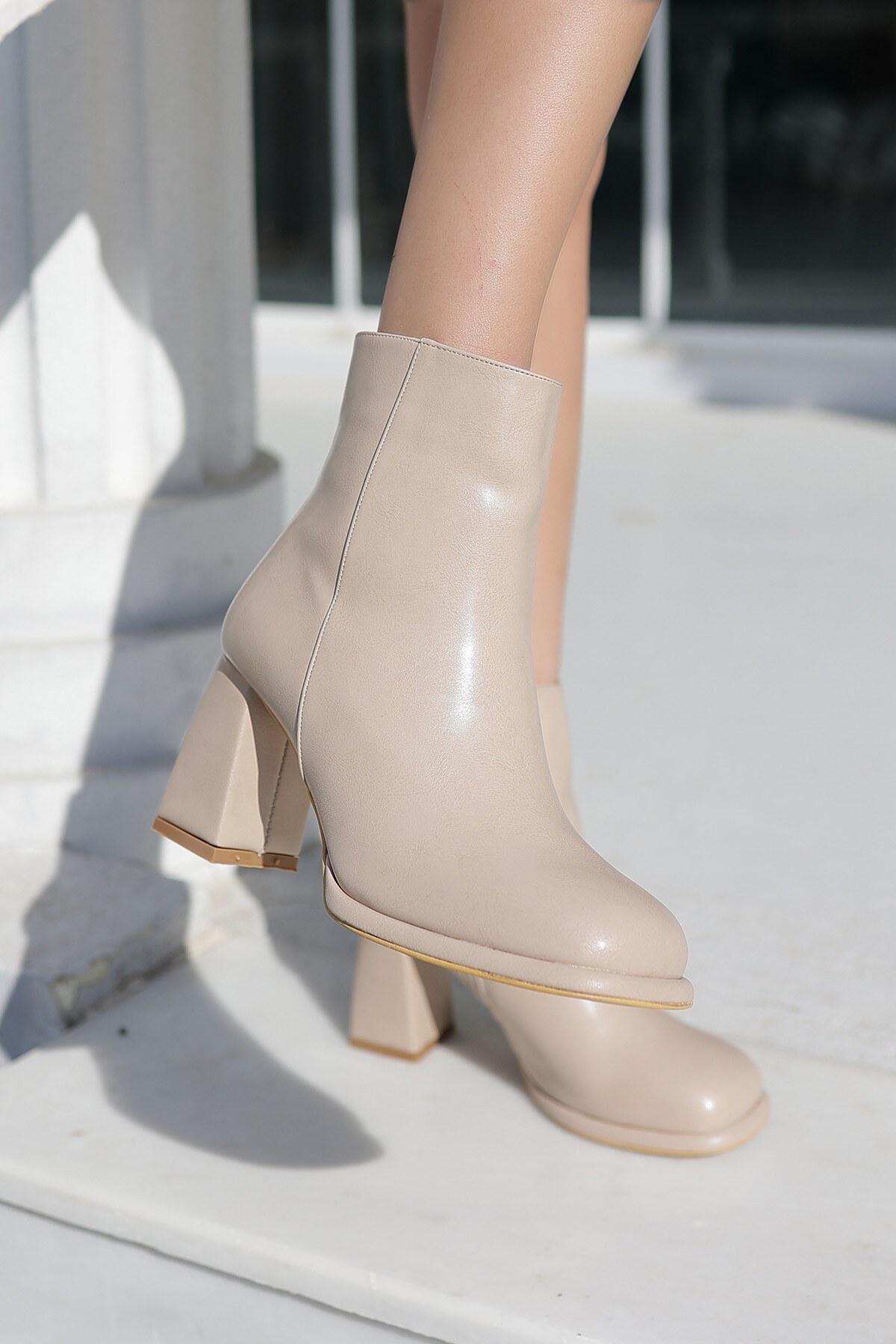 Kadın Kısa Platform Fermuarlı Bot Grio Bej