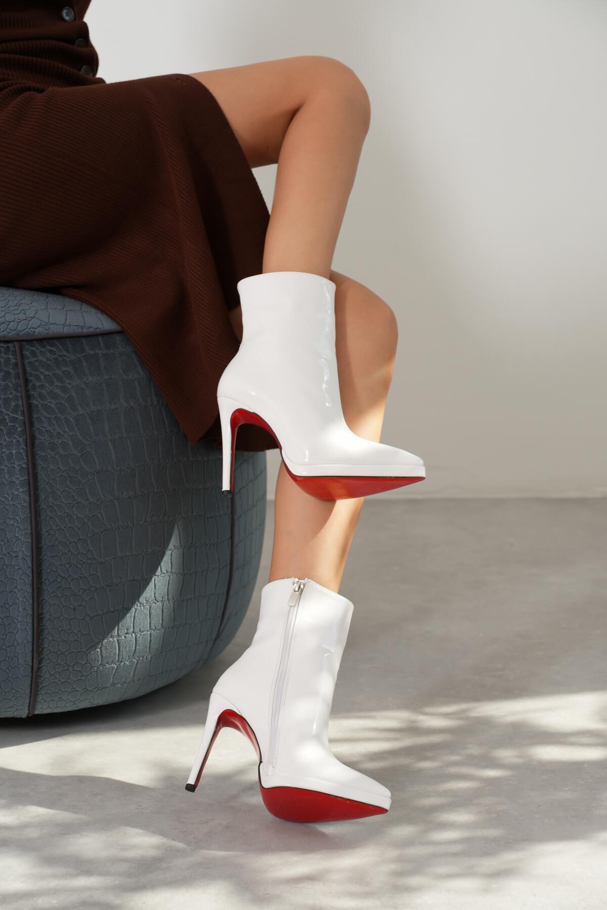 Kadın Kısa Platform Topuklu Bot Accosi Beyaz Rugan