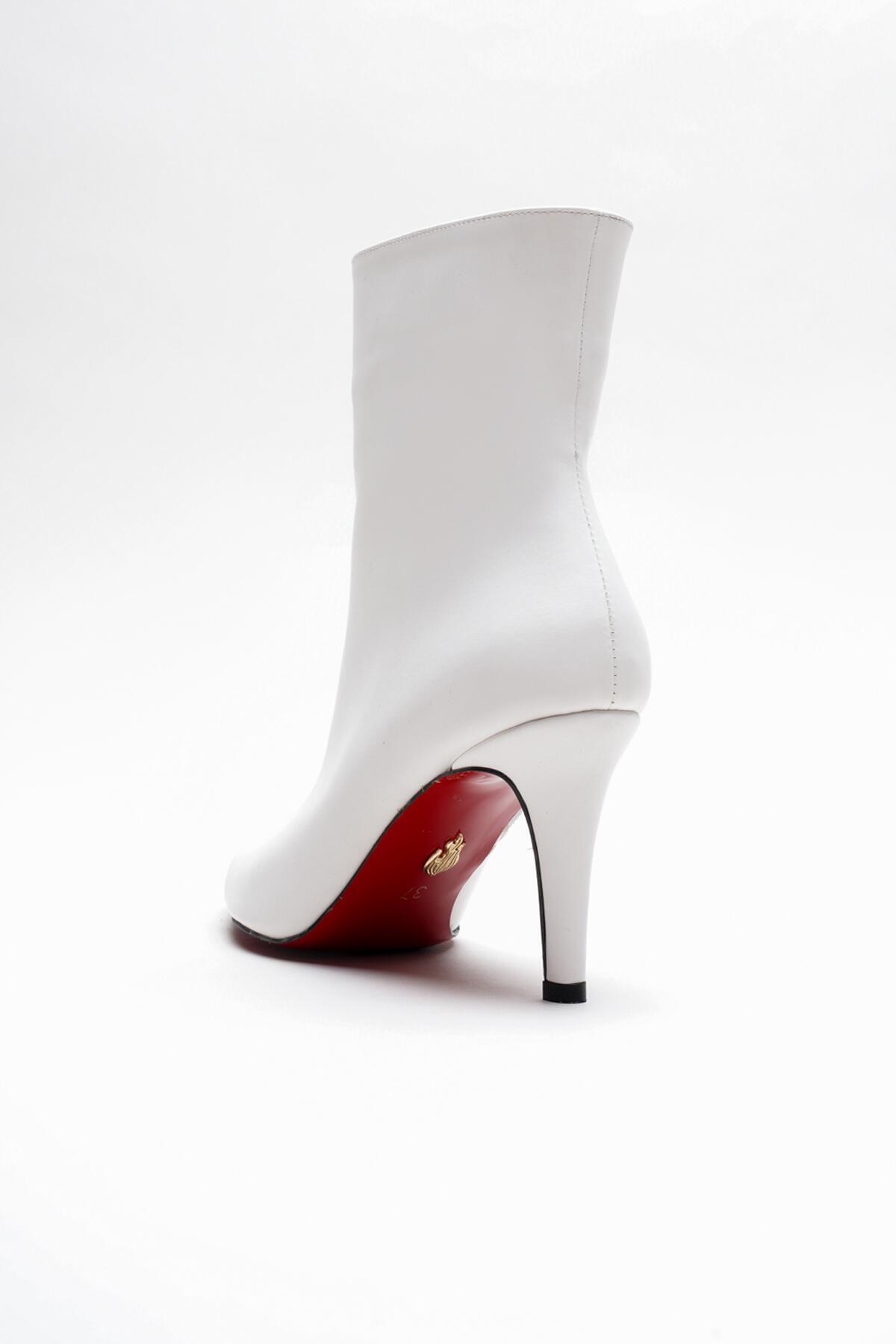Kadın Kısa Topuklu Sivri Burun Bot Deco Beyaz Cilt