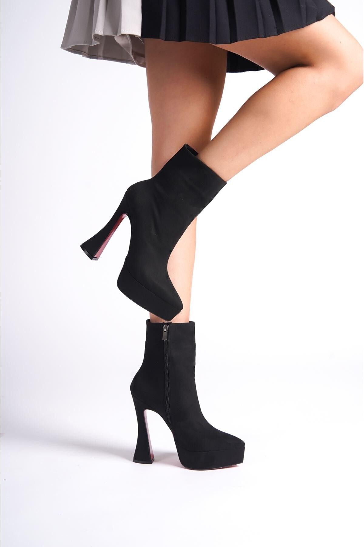 Kadın Sivri Burun Platform Bot Space Siyah Süet