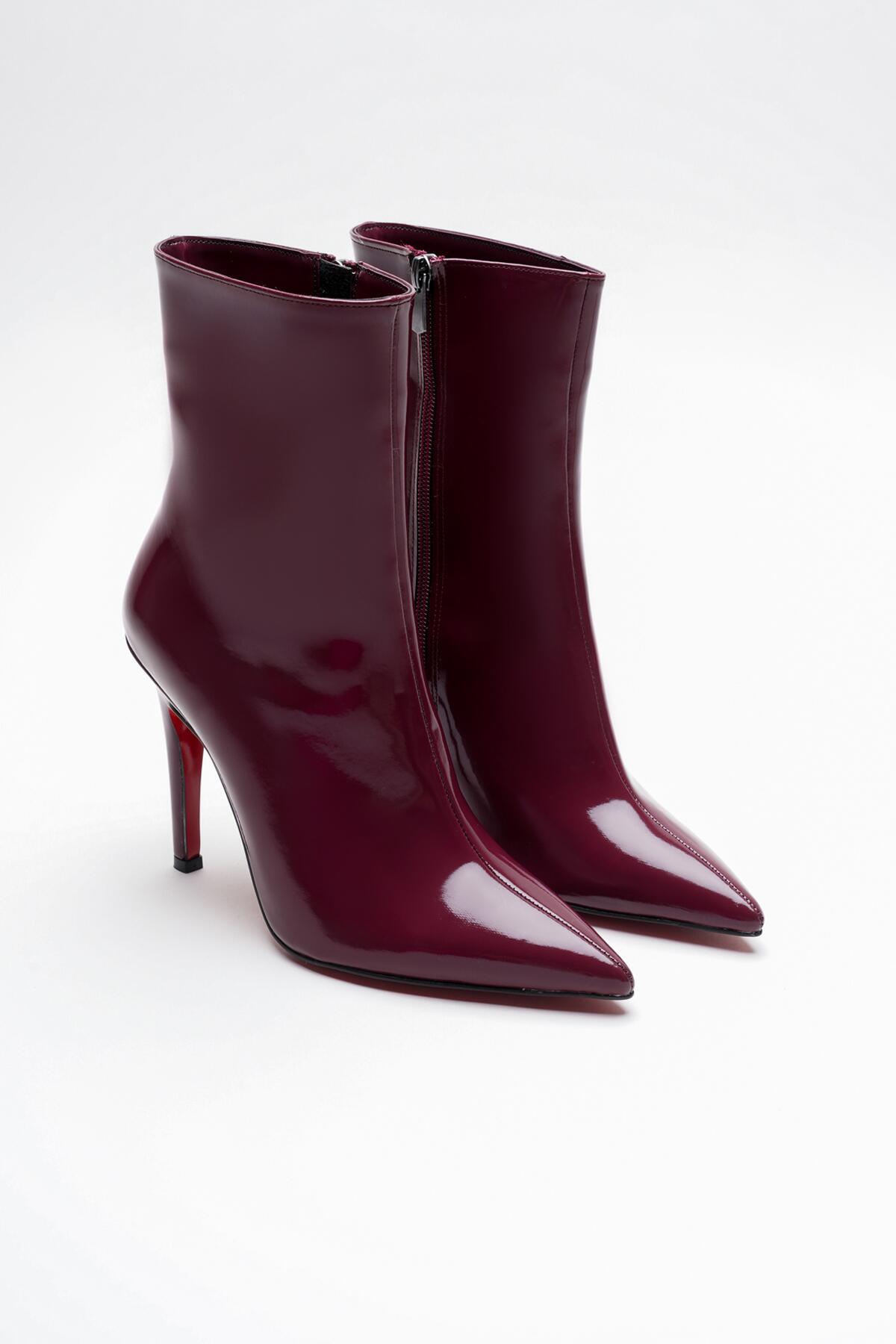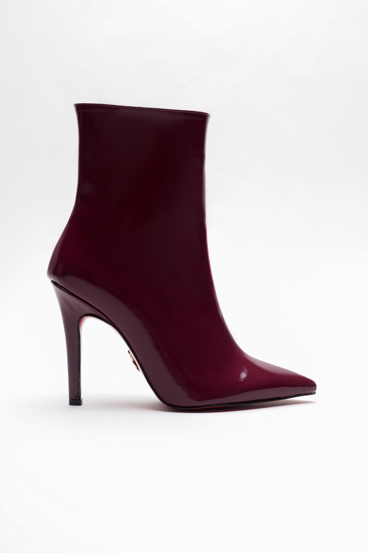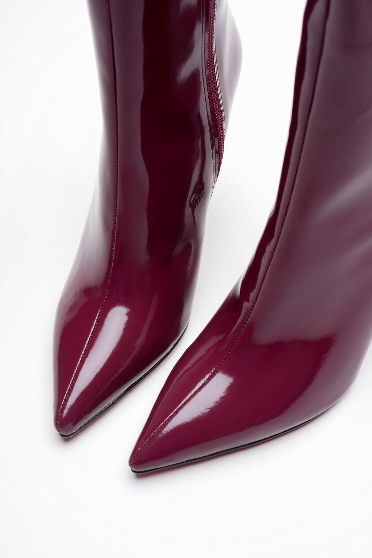 Kadın Sivri Burun Topuklu Bot Togi Bordo