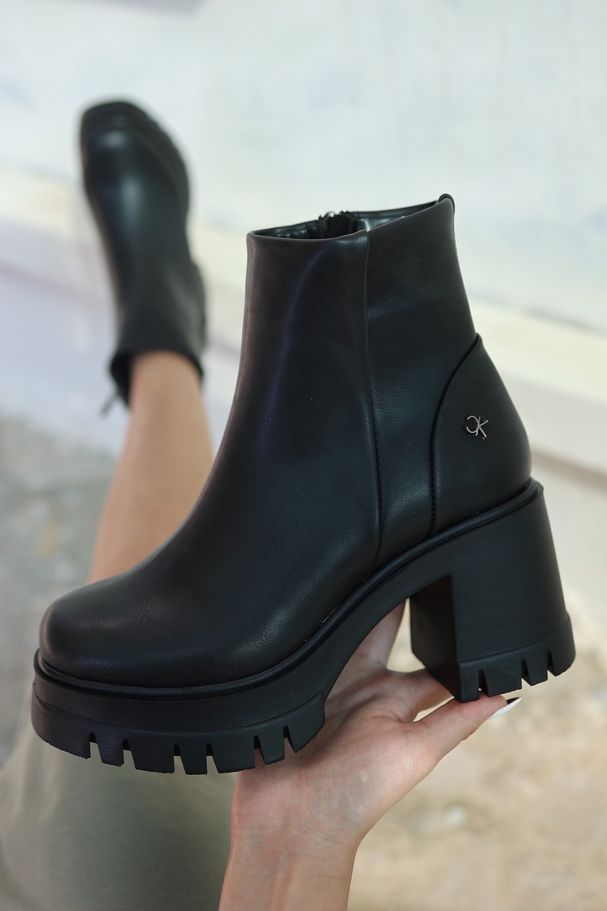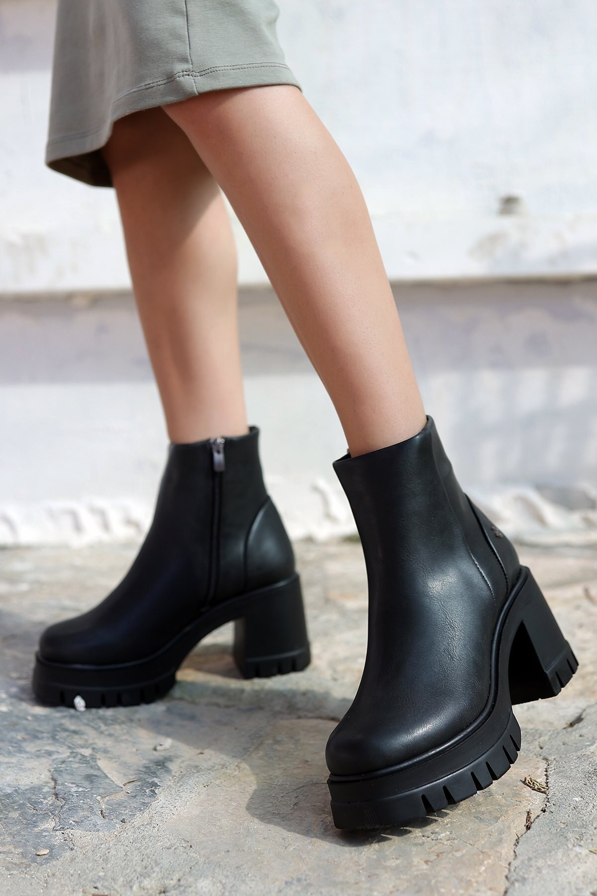 Kadın Yüksek Taban Fermuarlı Bot Klira Siyah Siyah