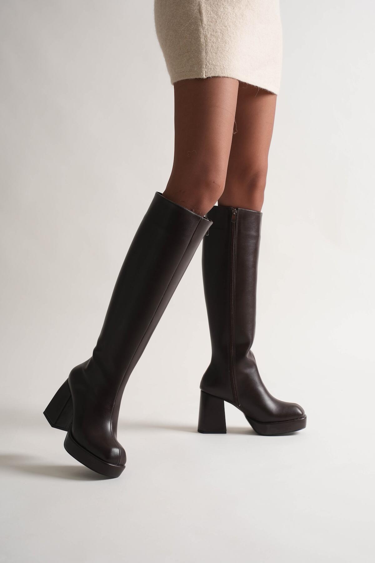 Kadın Alçak Platform Kalın Topuklu Ayakkabı Alice Kahverengi