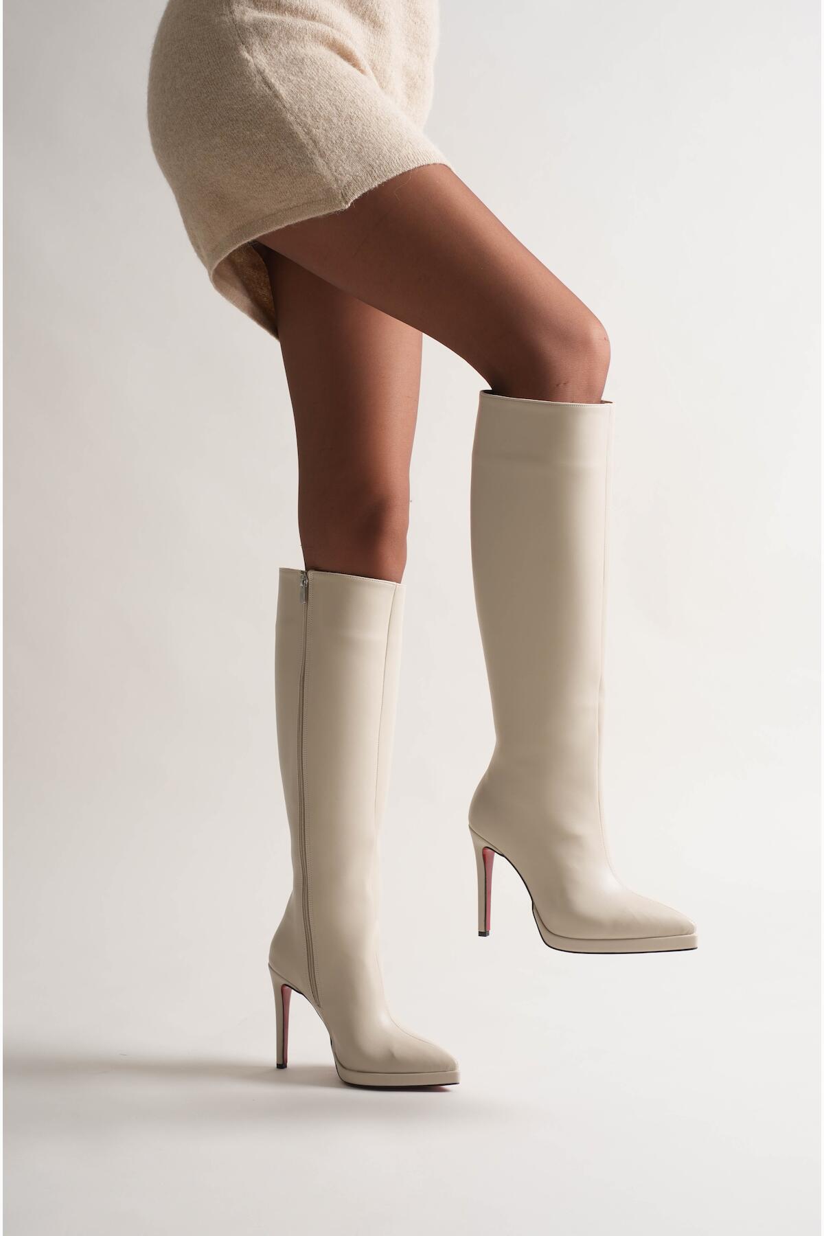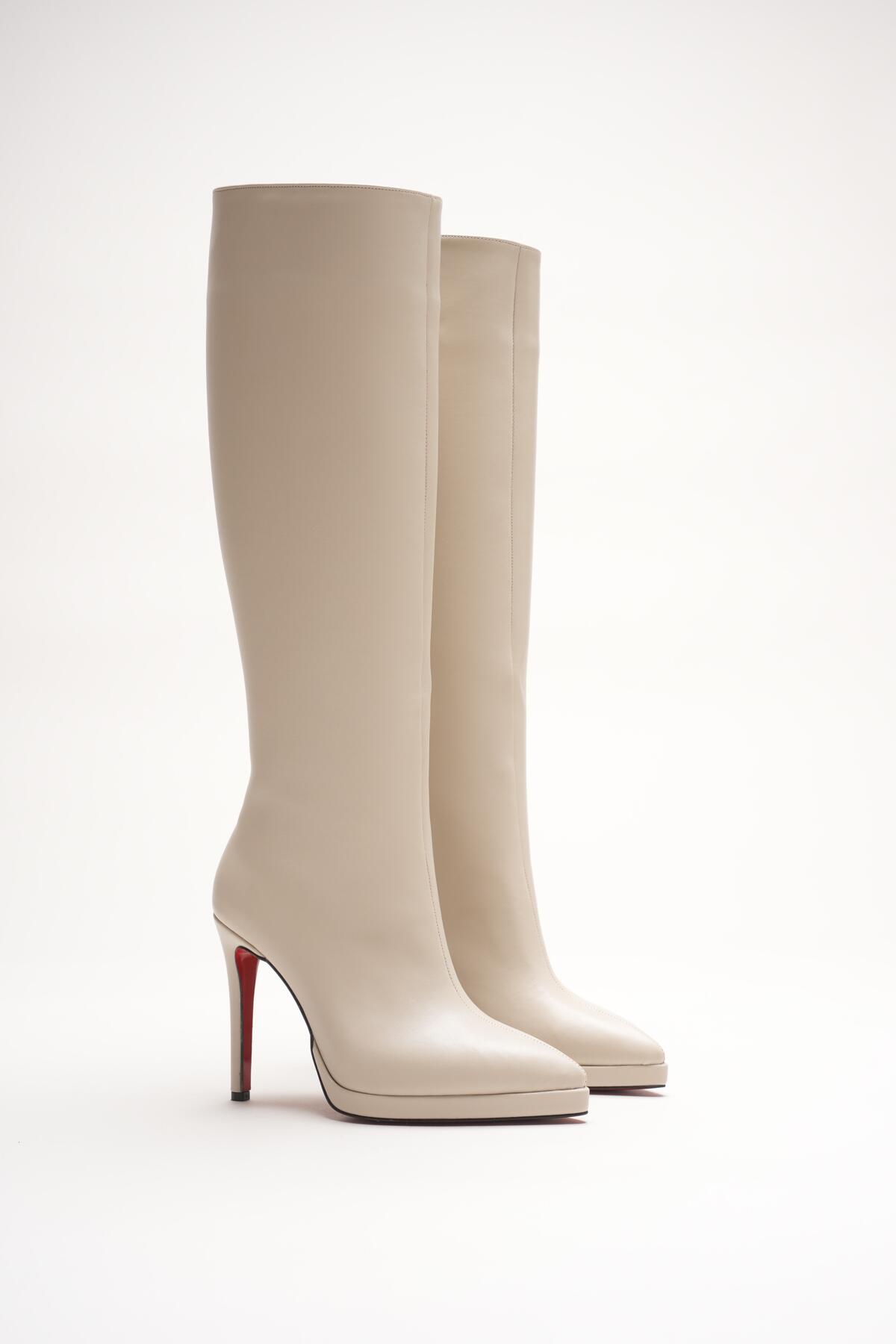 Kadın Diz Altı Kısa Platform Topuklu Çizme Amazen Bej