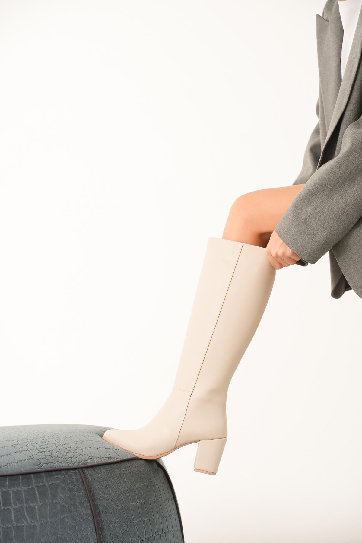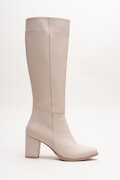 Kadın Fermuarlı Diz Altı Topuklu Çizme Allecia Bej