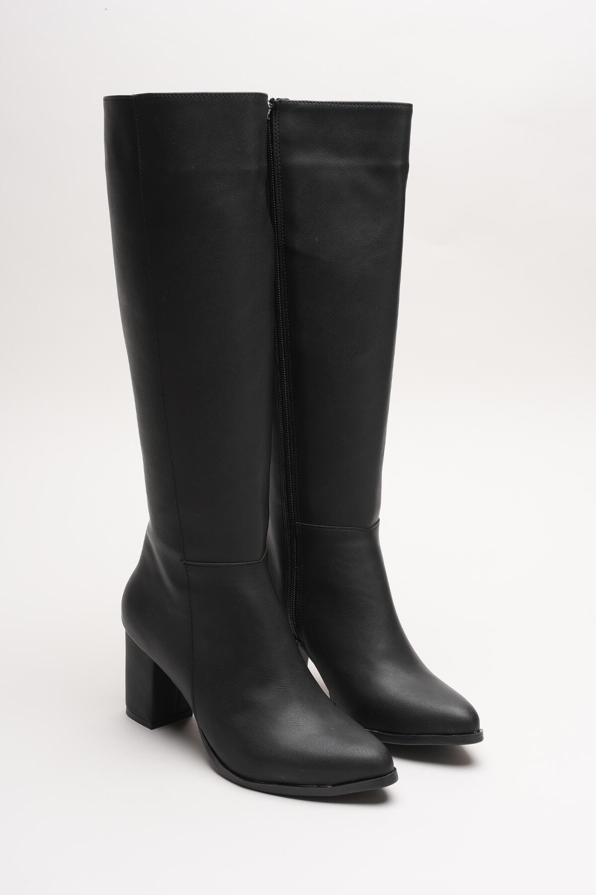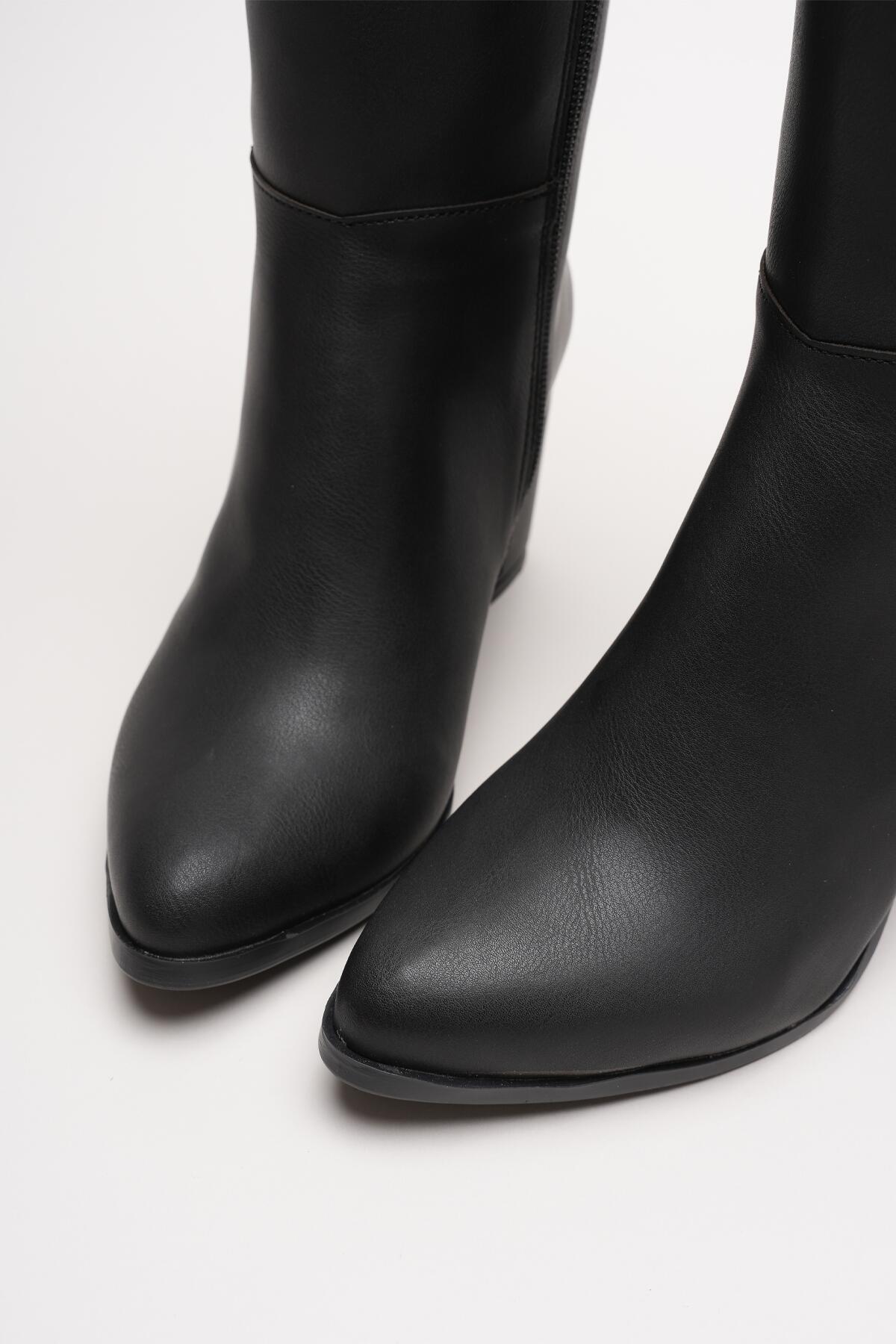 Kadın Fermuarlı Diz Altı Topuklu Çizme Allecia Siyah Cilt