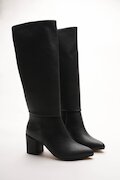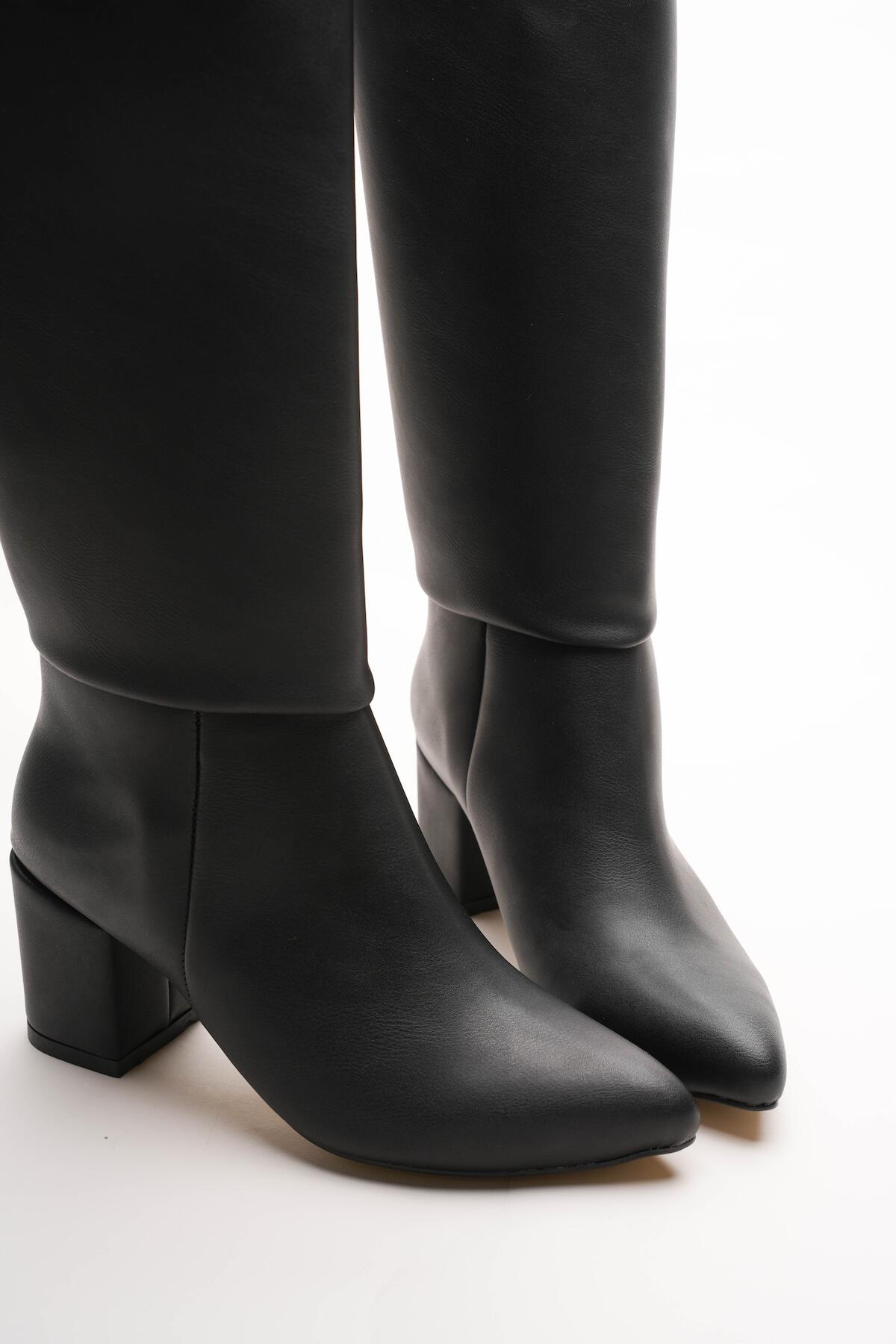 Kadın Fermuarsız Kısa Topuklu Diz Altı Çizme Alea Siyah Cilt