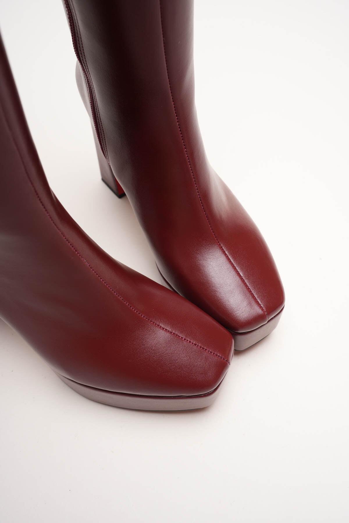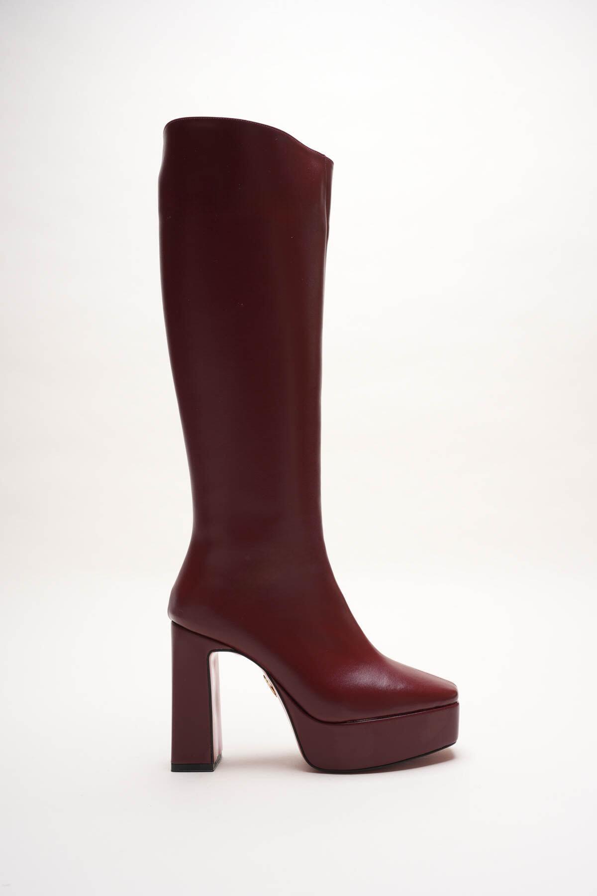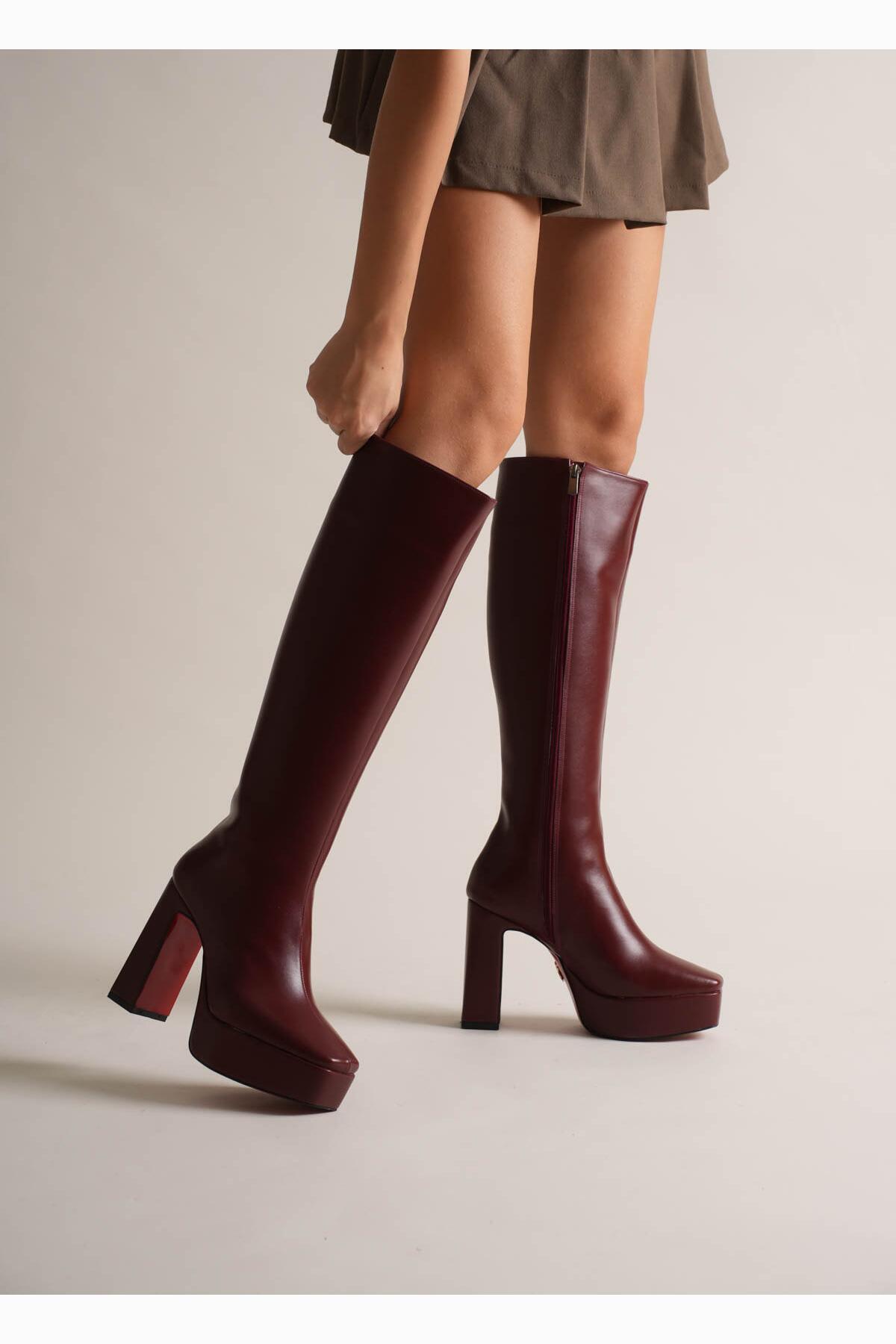 Kadın Platform Diz Altı Çizme Paman Bordo