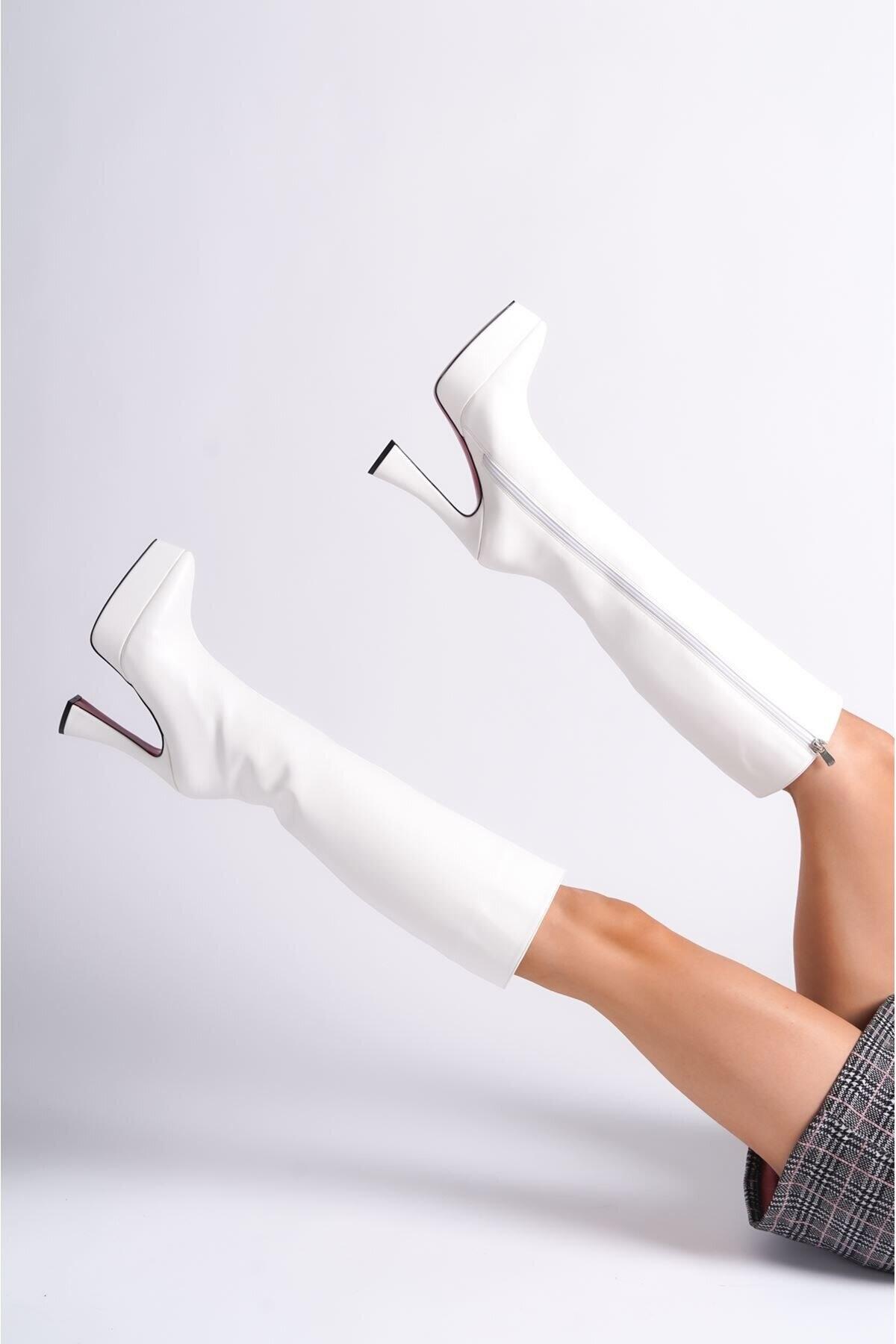 Kadın Sivri Burun Platform Çizme Violet Beyaz Cilt
