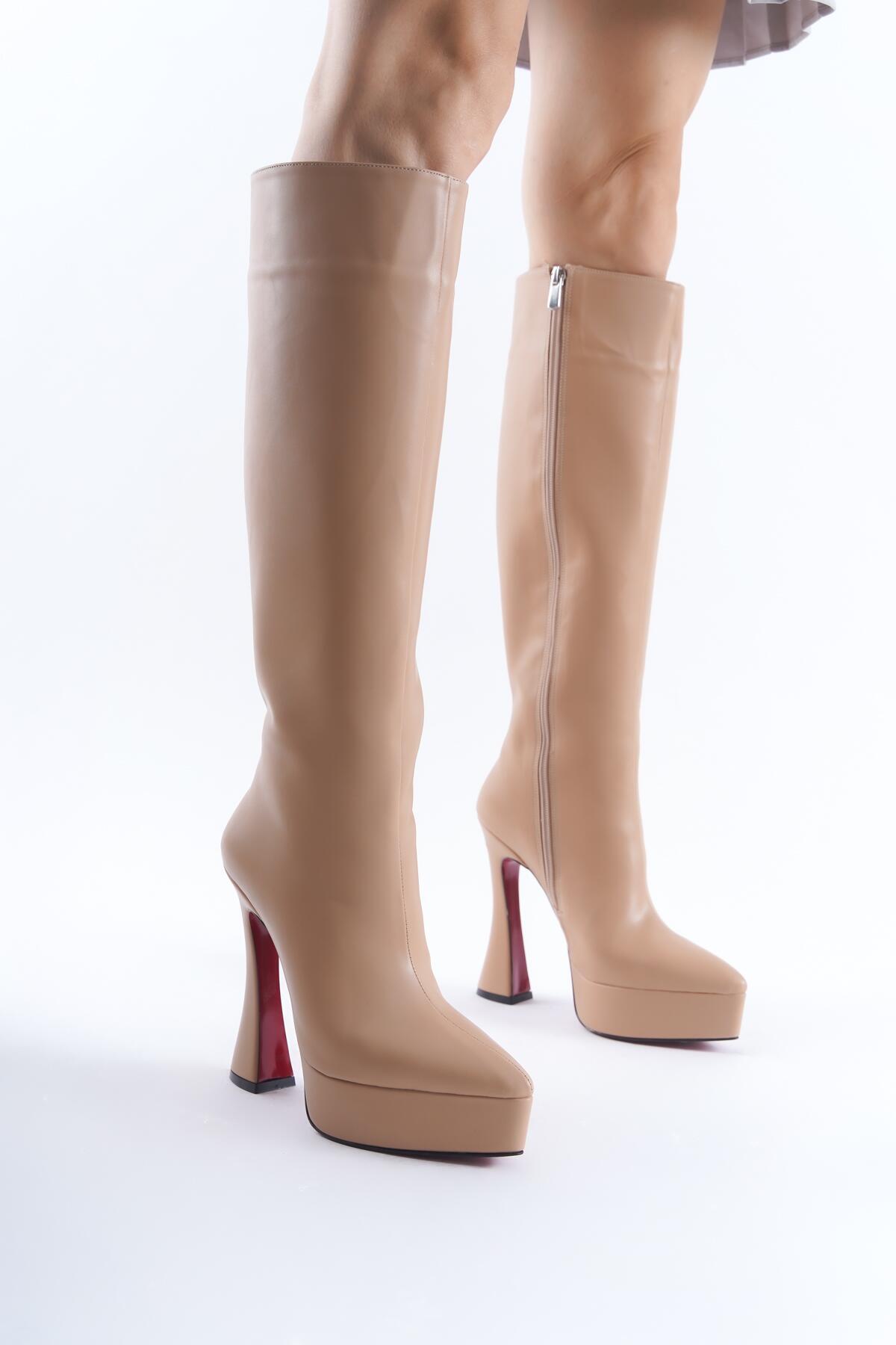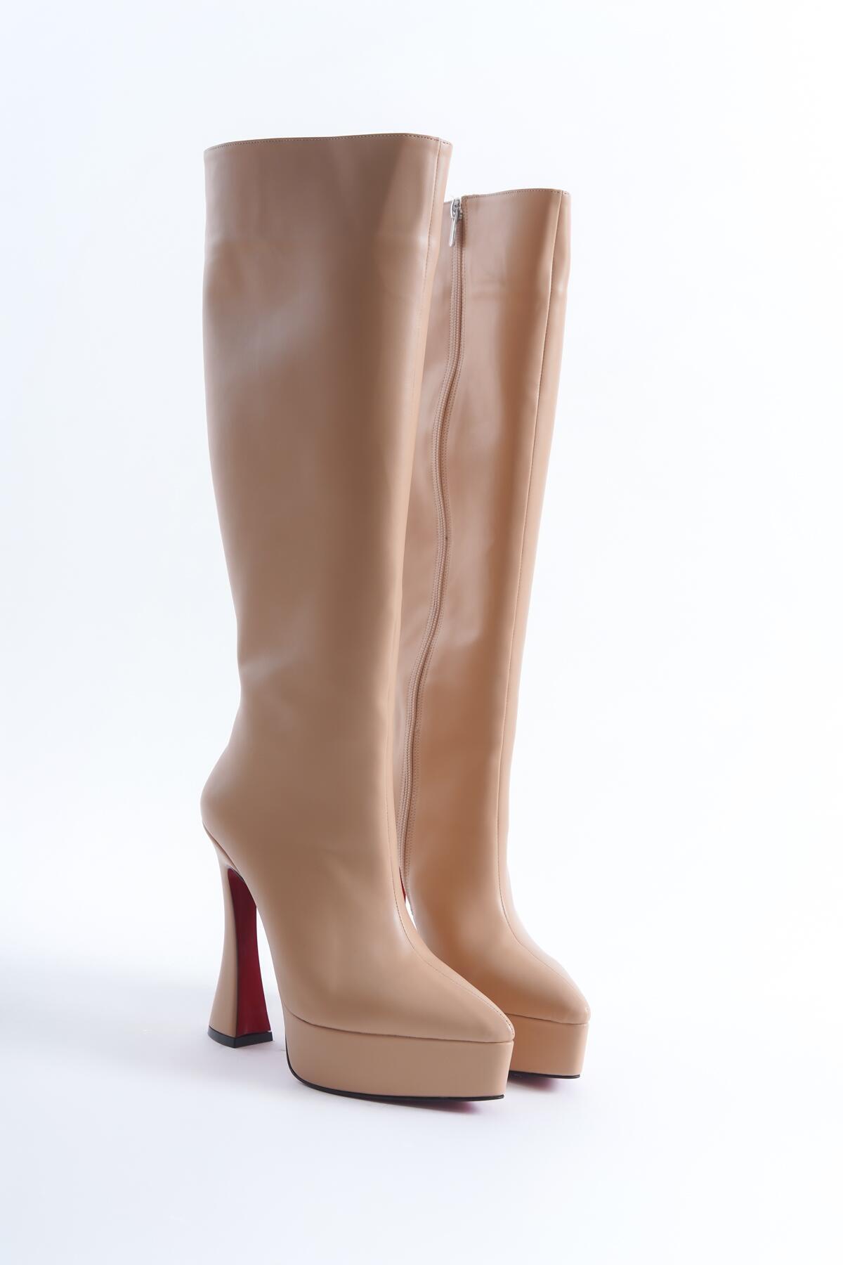 Kadın Sivri Burun Platform Çizme Violet Nude Cilt