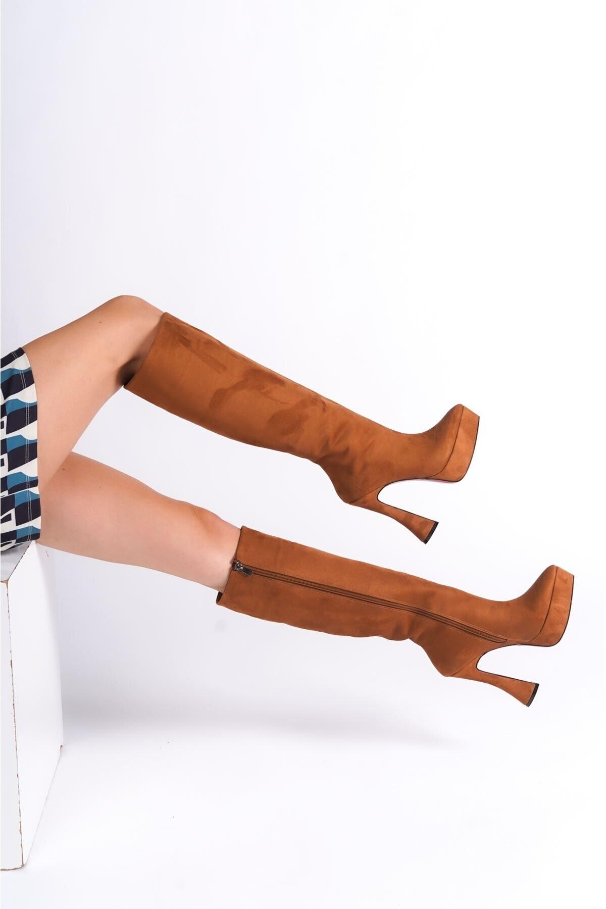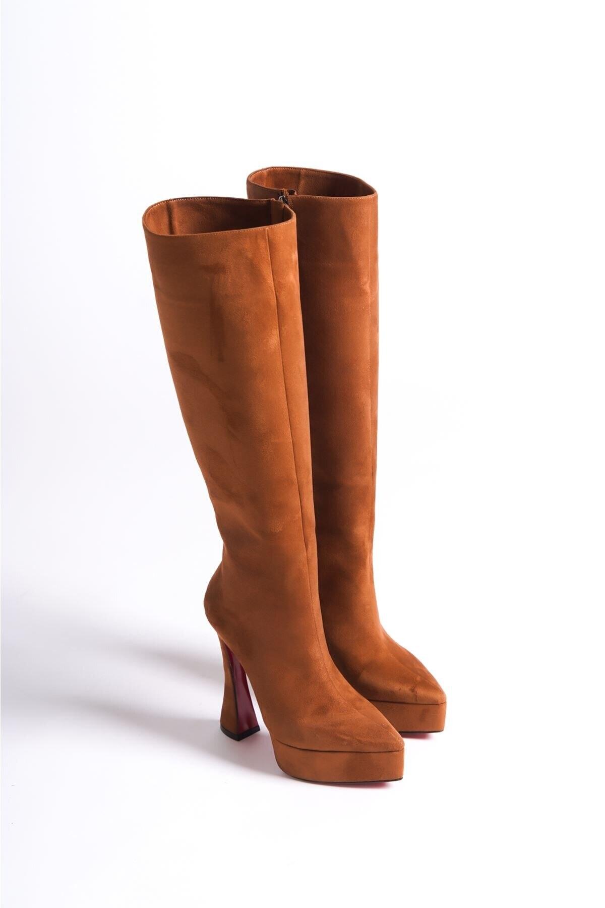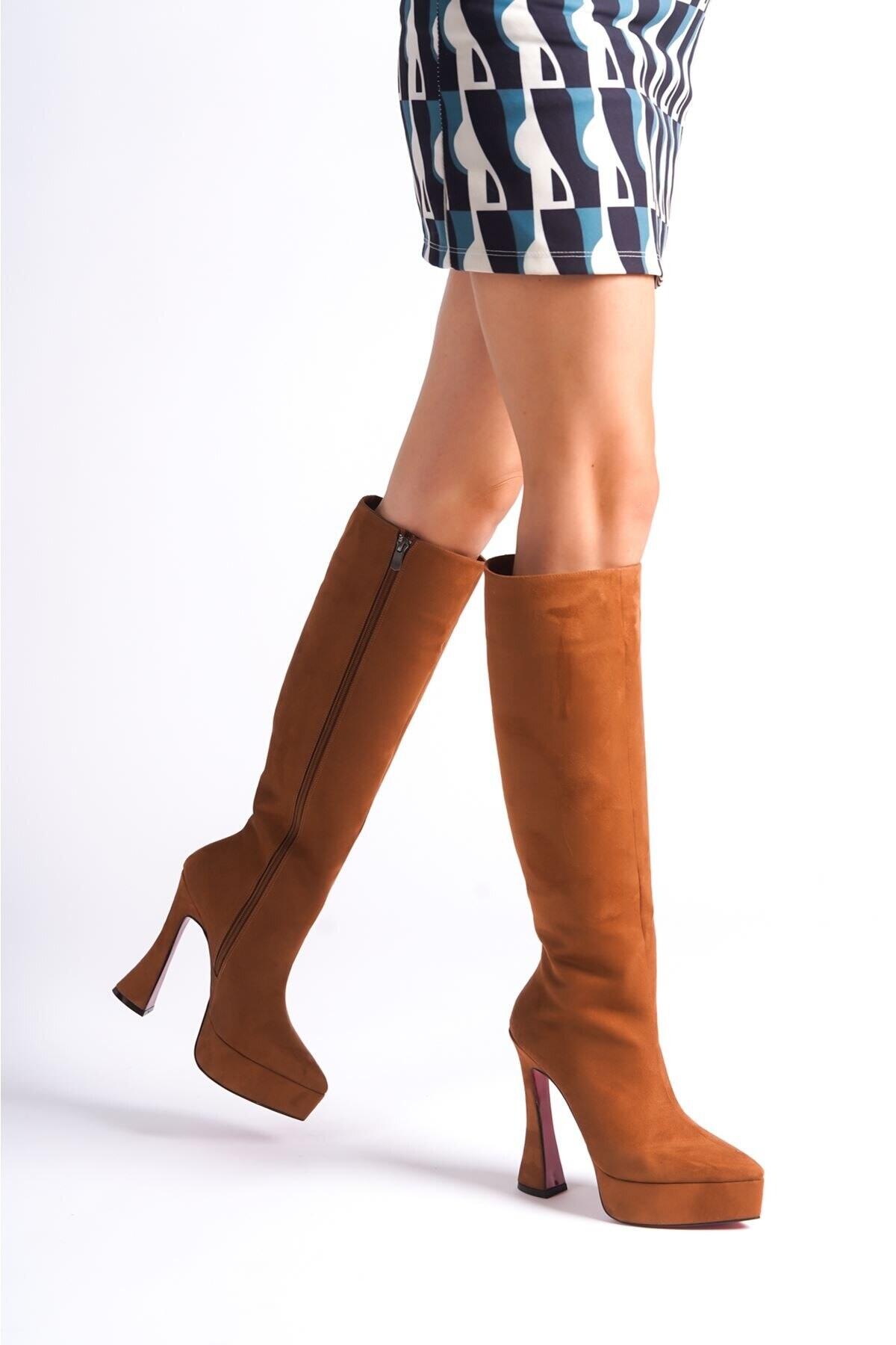 Kadın Sivri Burun Platform Çizme Violet Taba Süet