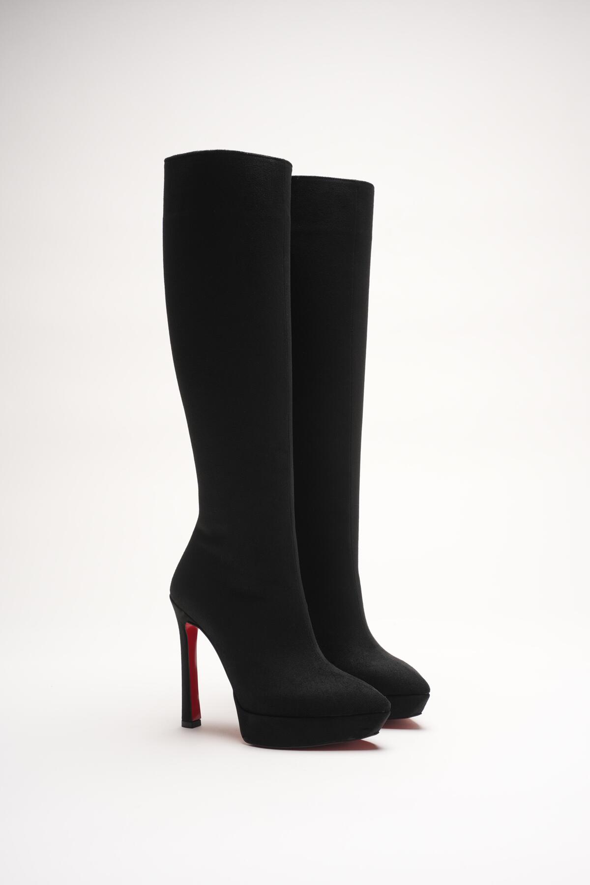 Kadın Tasarım Platform Yüksek Topuklu Çizme Carcie Siyah Süet