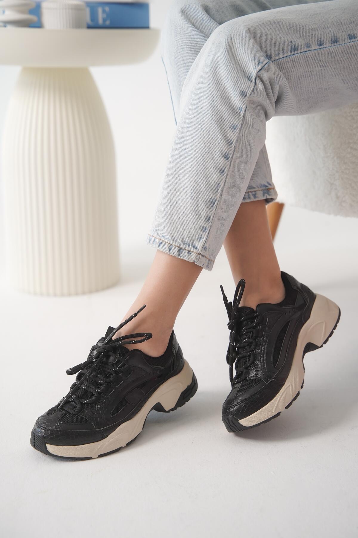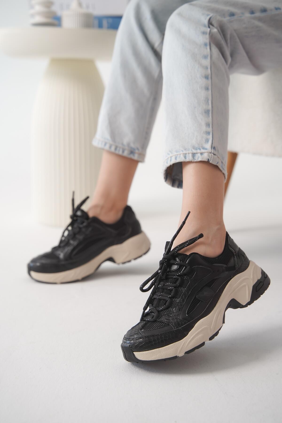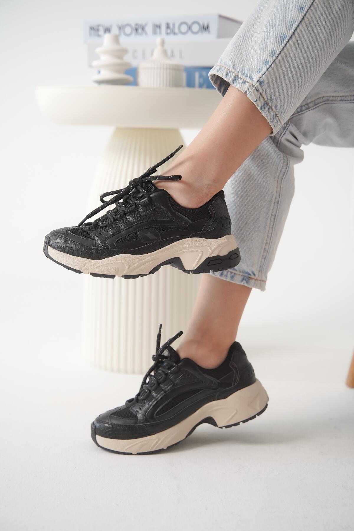 Kadın Bej Taban Bağcıklı Sneaker Lorela Siyah
