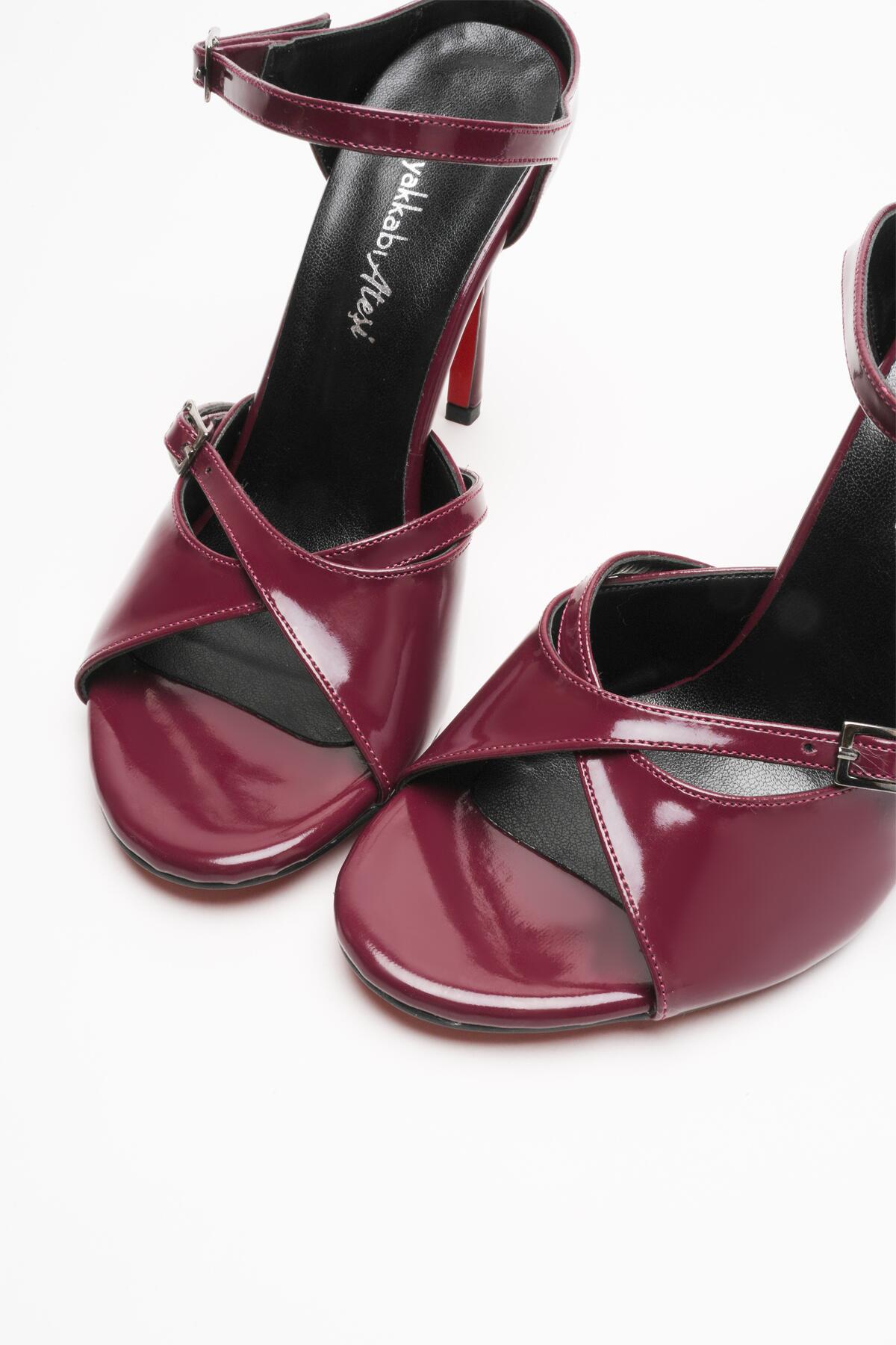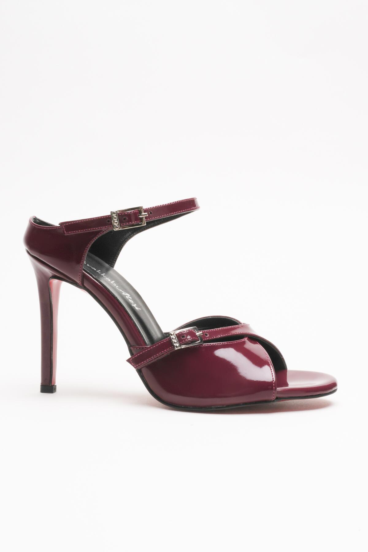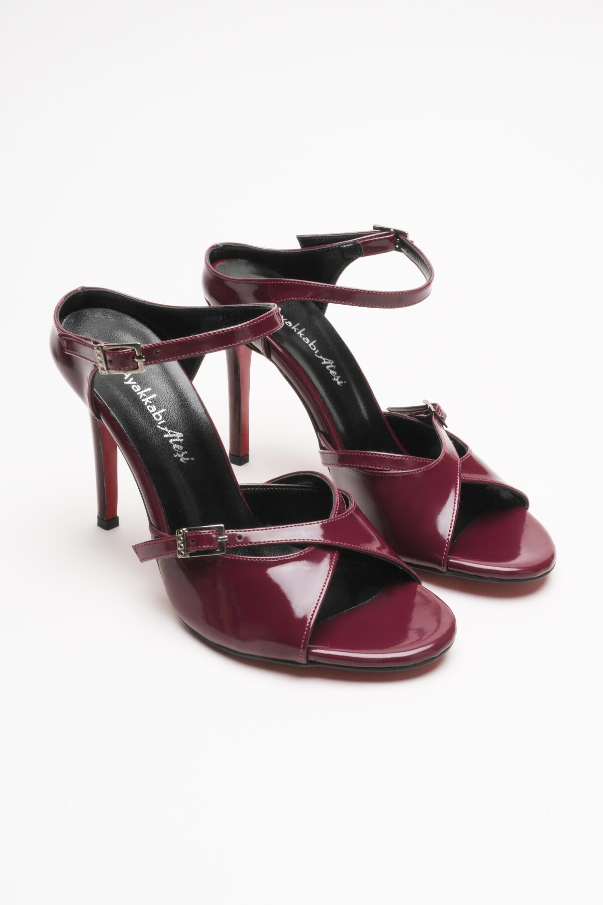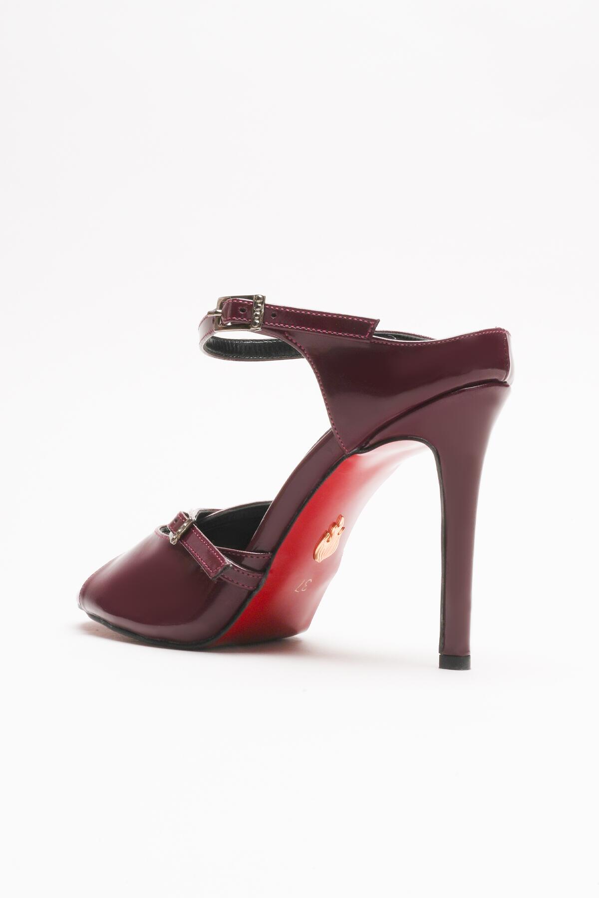 Kadın Çift Bantlı Tasarım Topuklu Ayakkabı Liona Bordo