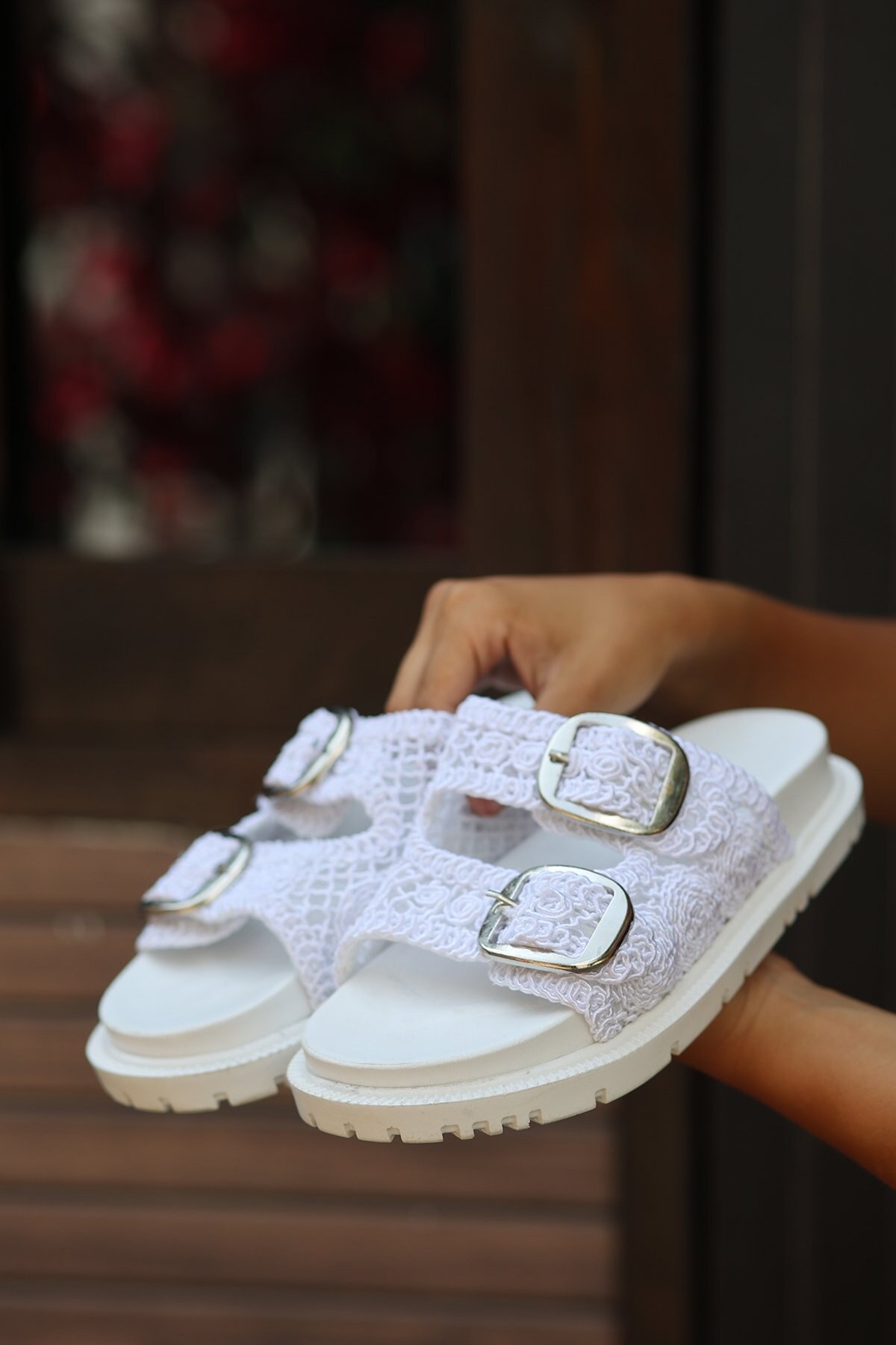 Kadın Çit Toka Dantelli Terlik Mia Beyaz