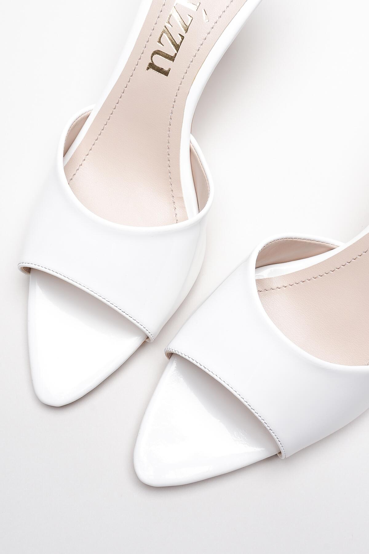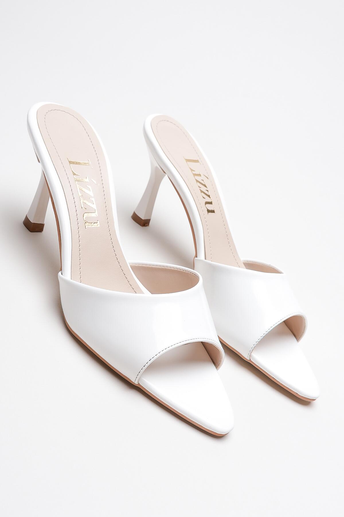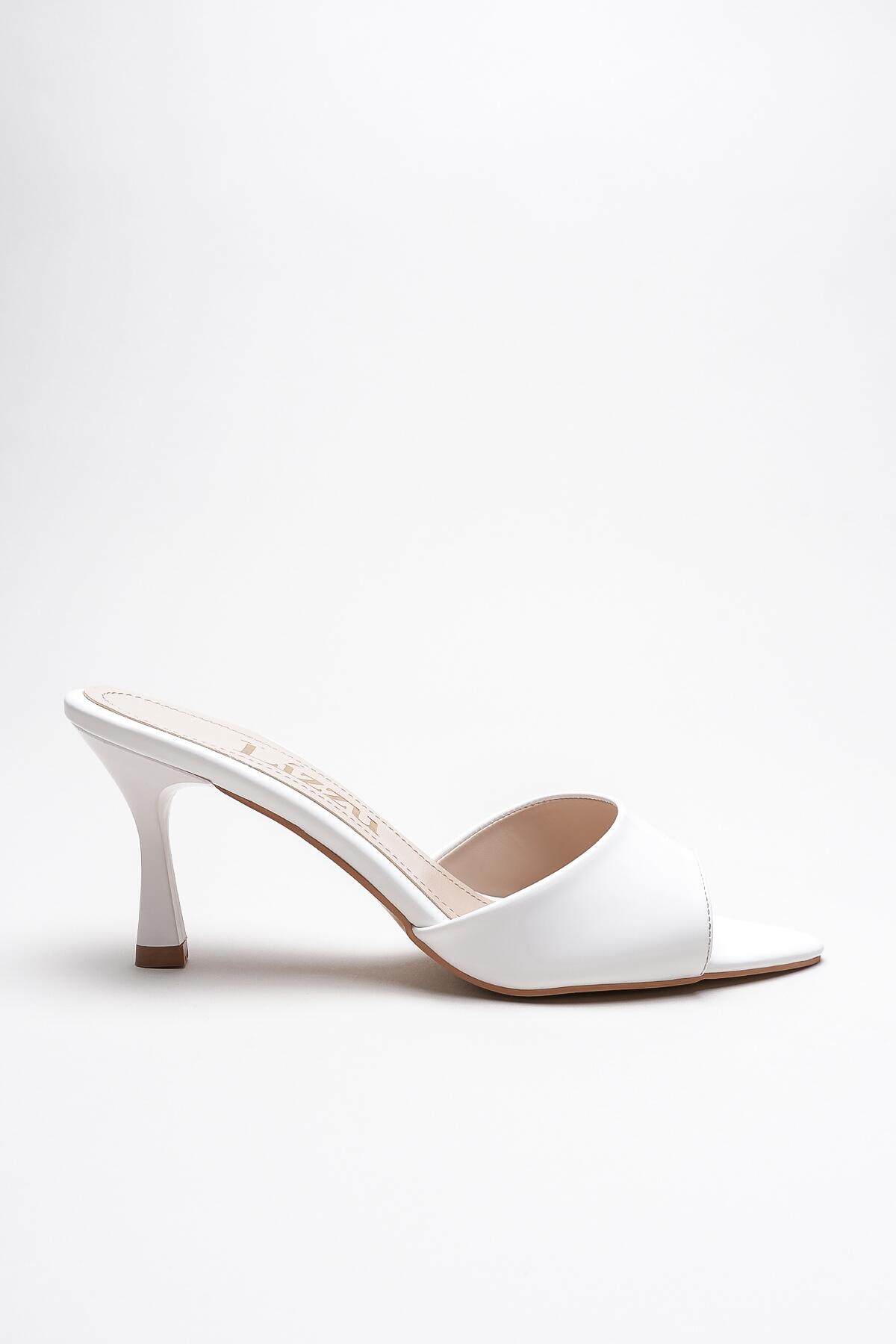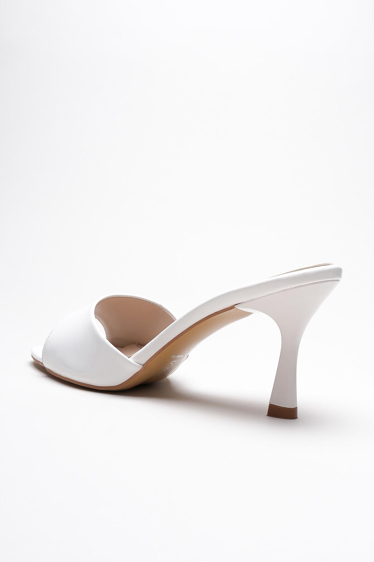 Kadın Sivri Burun Açık Topuklu Terlik Leni Beyaz Rugan